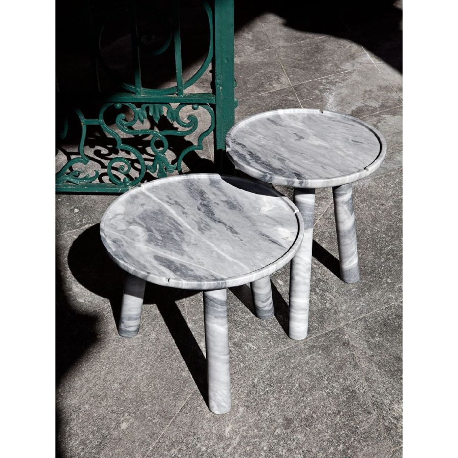 The Stone Round Coffee Table is entirely carved in marble, with a top framed by a subtle detail that enhances its elegance. Available in different sizes and heights, it can be combined in versatile compositions, turning a functional piece into a design icon.