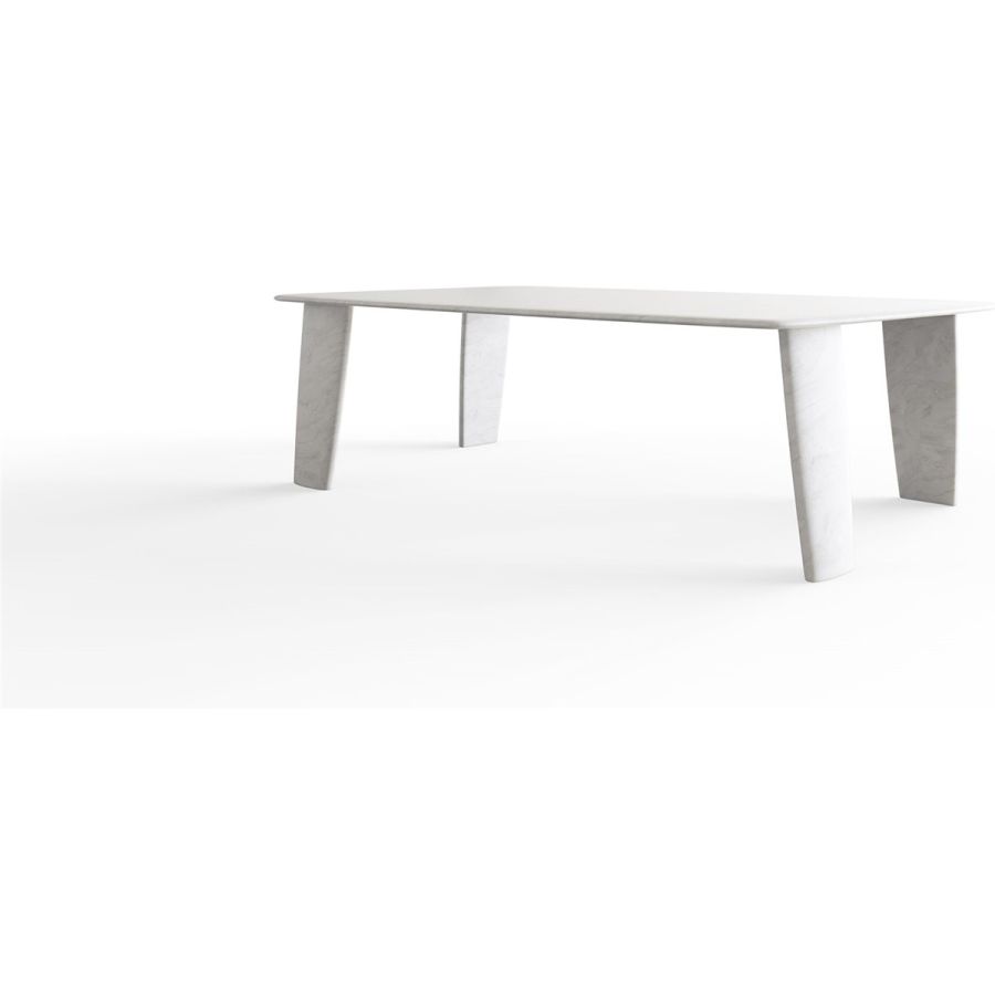 Bold and refined, the Biscuit Dinner Table pairs a travertine top with marble legs joined invisibly. Gentle, hand-polished curves evoke the softness of a biscuit, revealing a piece that is both architectural and sensuous — a pure expression of material beauty.