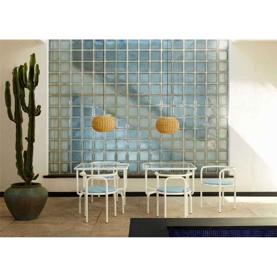 The Locus Solus Dining Table, designed by Gae Aulenti in 1964, brings playful retro charm outdoors. Its tubular steel frame, visible through the glass top, creates a bold yet light design. A pop icon that combines vintage allure with contemporary elegance for shared moments.