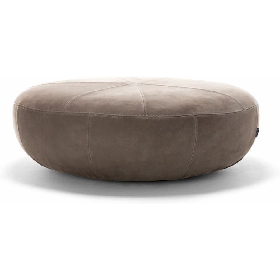 10th Clove Pouf, soft and monolithic, embraces spaces with its abundant shape. Wedge stitching enhances its unique character, blending elegance and detail. Perfect in fabric or leather, it brings outdoor living a new dimension of style.