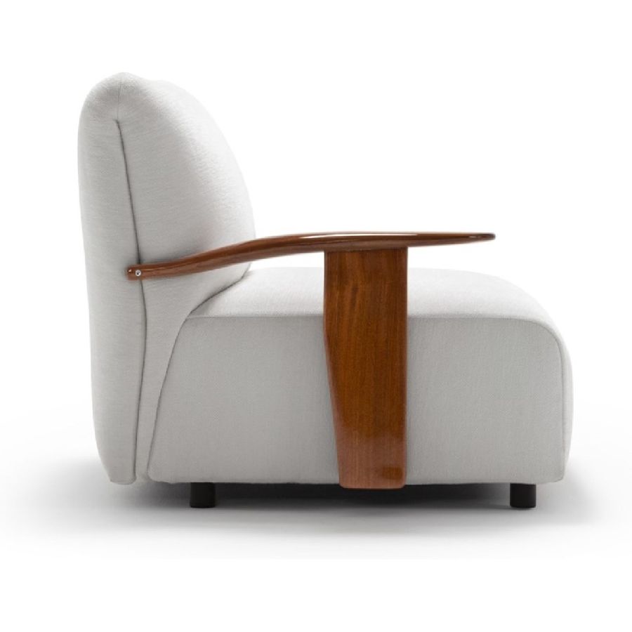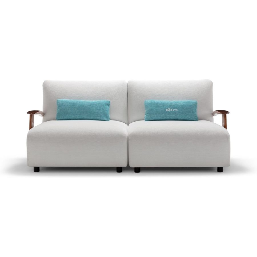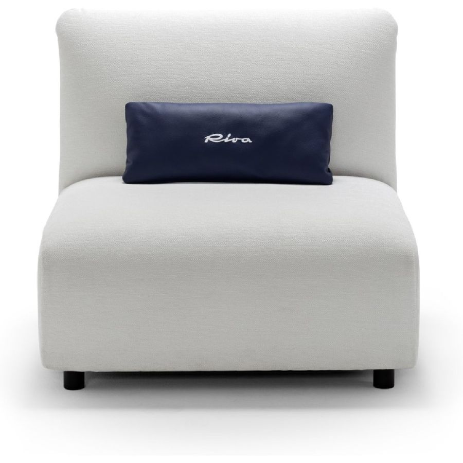An homage to the iconic Riva yachts, this sofa combines nautical heritage with modern comfort. Generous, sculptural volumes rest on a nautical-inspired structure, with armrests available in solid mahogany or upholstered versions. Every detail is handcrafted, reflecting nautical tradition and timeless elegance.