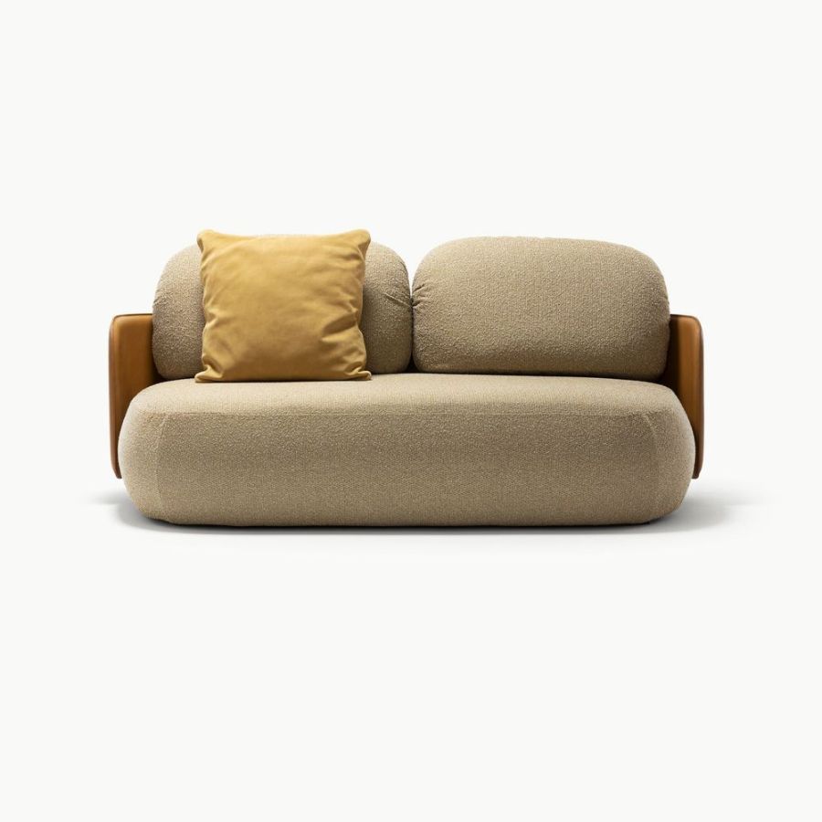 The Mochi Sofa, inspired by the Japanese treat, combines softness and versatility in generous volumes. Perfect for terraces or yachts, it features a leather backrest embracing plush cushions. Resistant to sun and moisture, it redefines outdoor comfort with playful elegance and refined design.