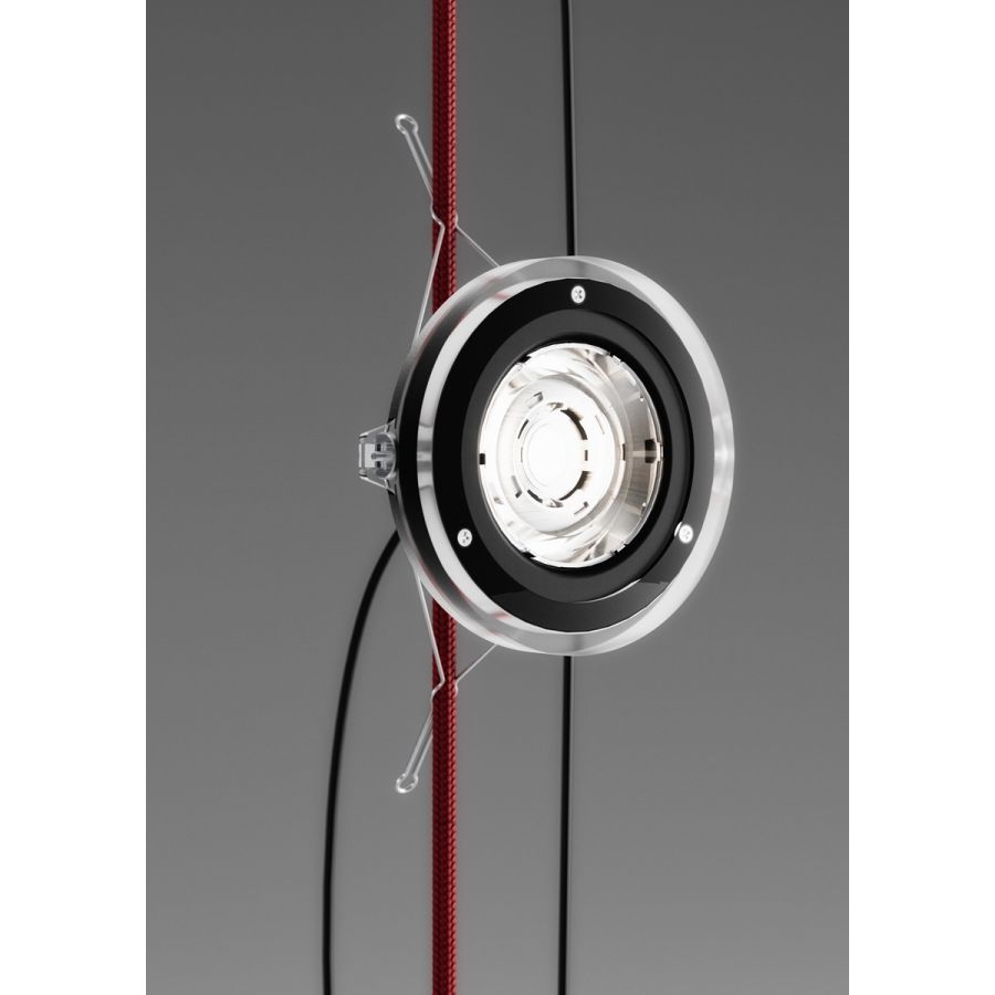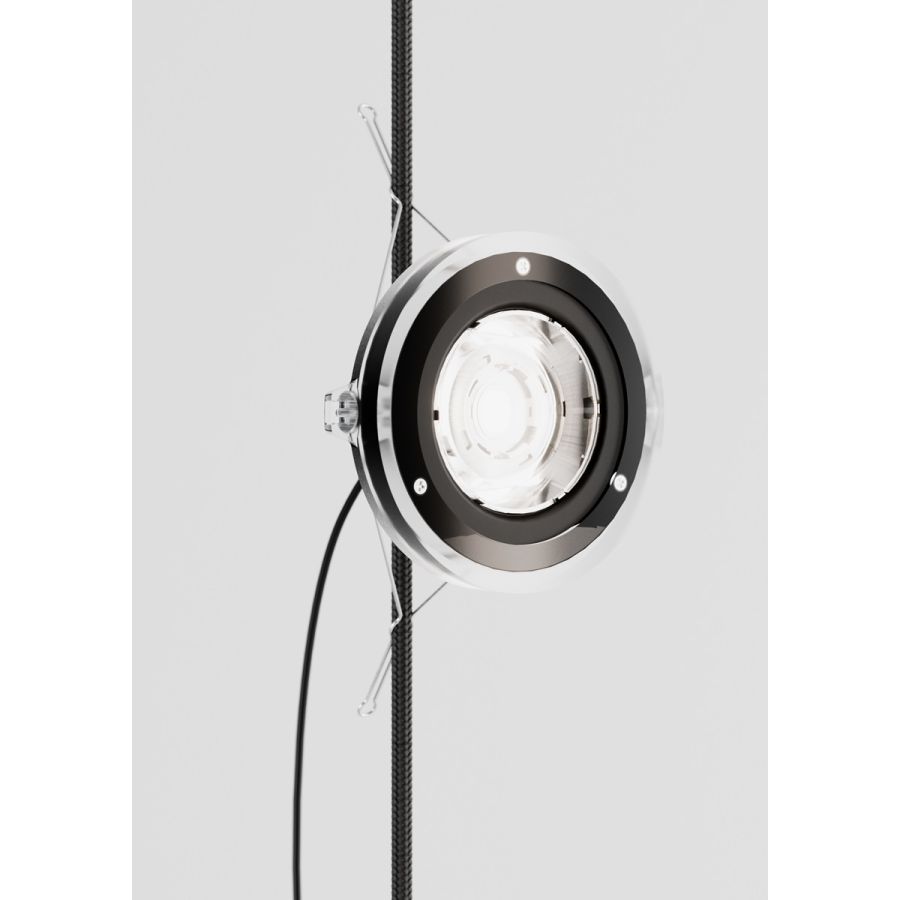 Armaturerna är upphängda i en textilkabel som är fäst i taket. Strömförsörjningen finns vid golvnivå. Armaturens kropp kan glida upp och ner och rotera, och har en aluminiumring med stålfjädrar som gör att ljuskäglan kan riktas som önskat. Ljuskällan är en integrerad LED och finns med dimmer PUSH.