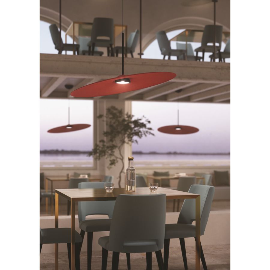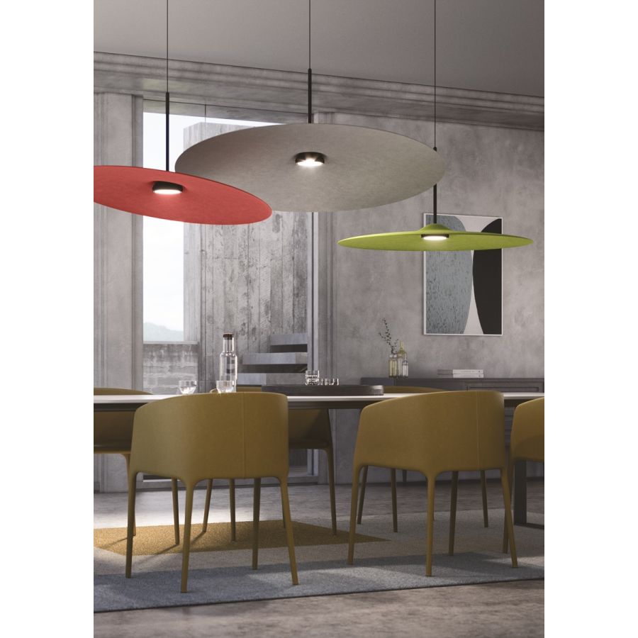 Acustica pendellampan består av ett minimalt yttre skal tillverkat av återvunnen PET. Det finns två former tillgängliga och de passar för alla offentliga utrymmen, såsom restauranger och lyxiga kontor, såväl som stora väntrum. LED-ljuset är jämnt och skapar en mycket kreativ och välkomnande atmosfär.