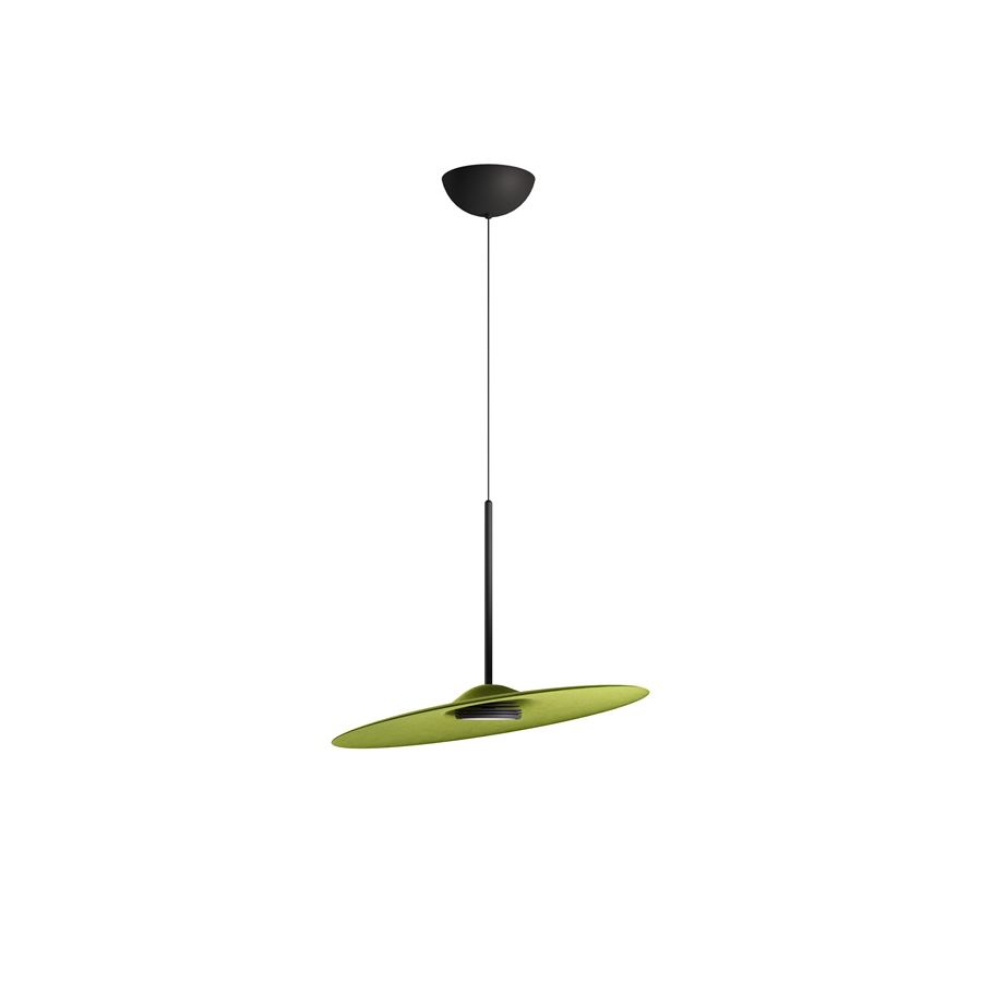 Inspirerad av en trummcymbal vänder Acusticas stora och tunna lampskärm på konceptet, genom att absorbera de omgivande ljudvågorna och skapa en hög akustisk komfort.