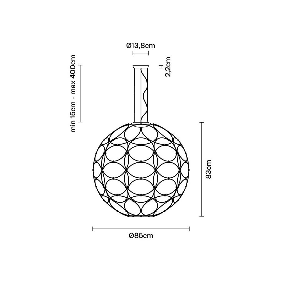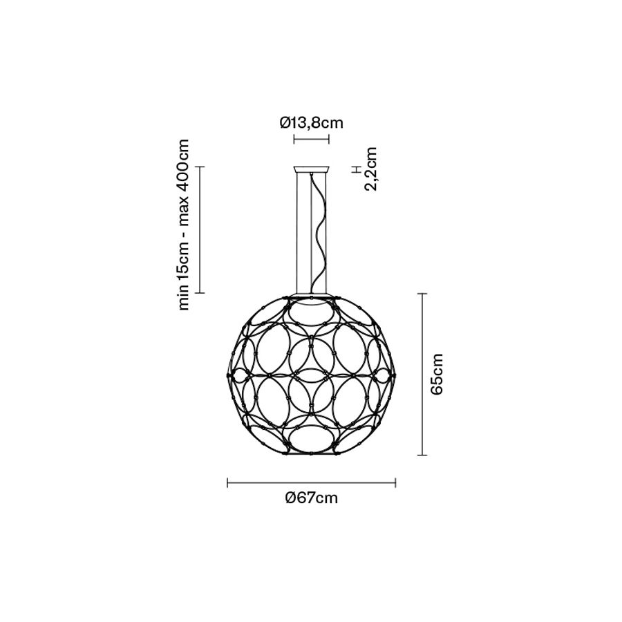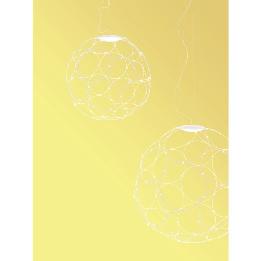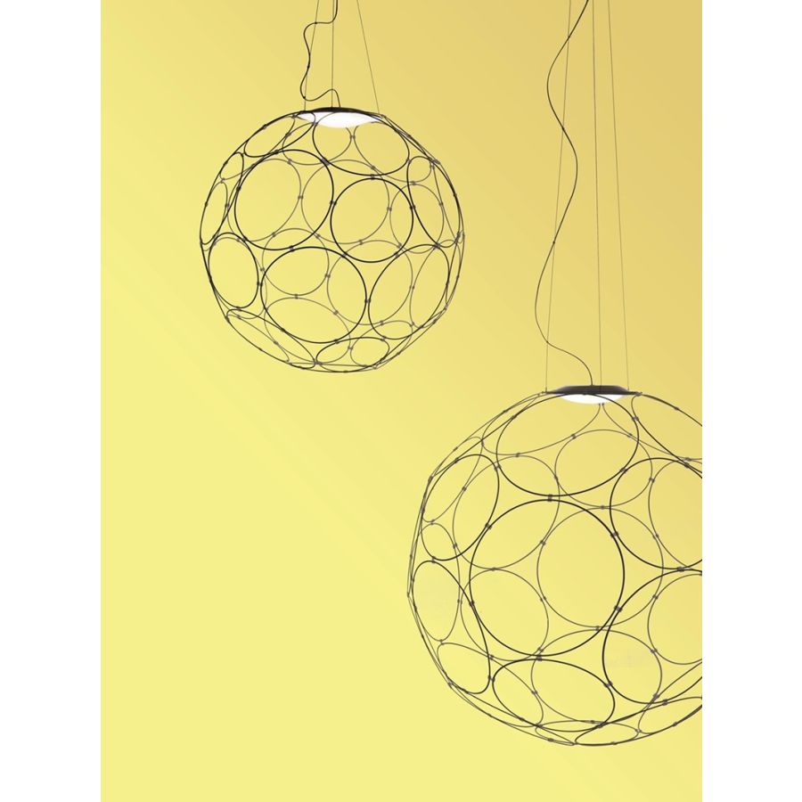 Kollektionen består av hänglampor för inomhusbruk, tillgängliga i två storlekar, båda uppbyggda av 32 ringar i varierande diameter som är sammanfogade för att bilda en sfärisk form. Det finns också två tillgängliga ytbehandlingar: polerad vit eller antracitgrå. Valet av ljuskälla inne i den metalliska strukturen beror på personliga smak och behov. Lampan drivs av nätström och är lämplig för användning med LED-lampor.