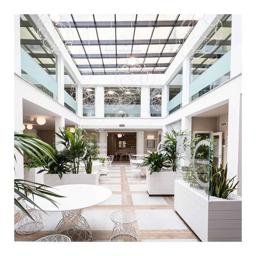 Tack vare dess storlek kan den installeras i stora miljöer och med olika stilar, lampan ger karaktär åt de miljöer där den är placerad. Dessutom kan ljuskällan installeras i vilken av ringarna som helst med rätt storlek, vilket tillåter att rikta ljusutsläppet dit det behövs.