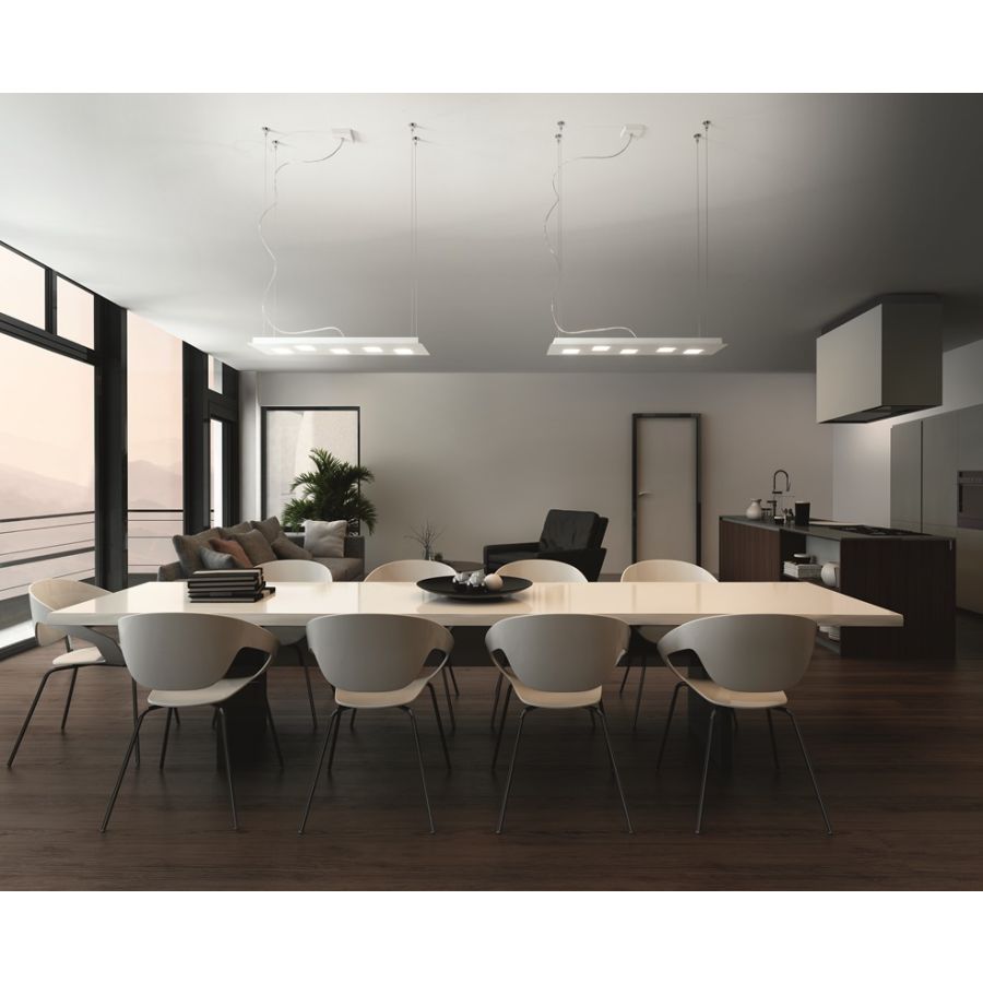 Quarter pendellampa finns i två storlekar och tre olika färger: vit, svart och borstad. Lampan är lämplig för samtida designmiljöer, idealisk för kontraktsprojekt men också för privata hem. Den kan installeras över köksbänken eller matsalsbordet.