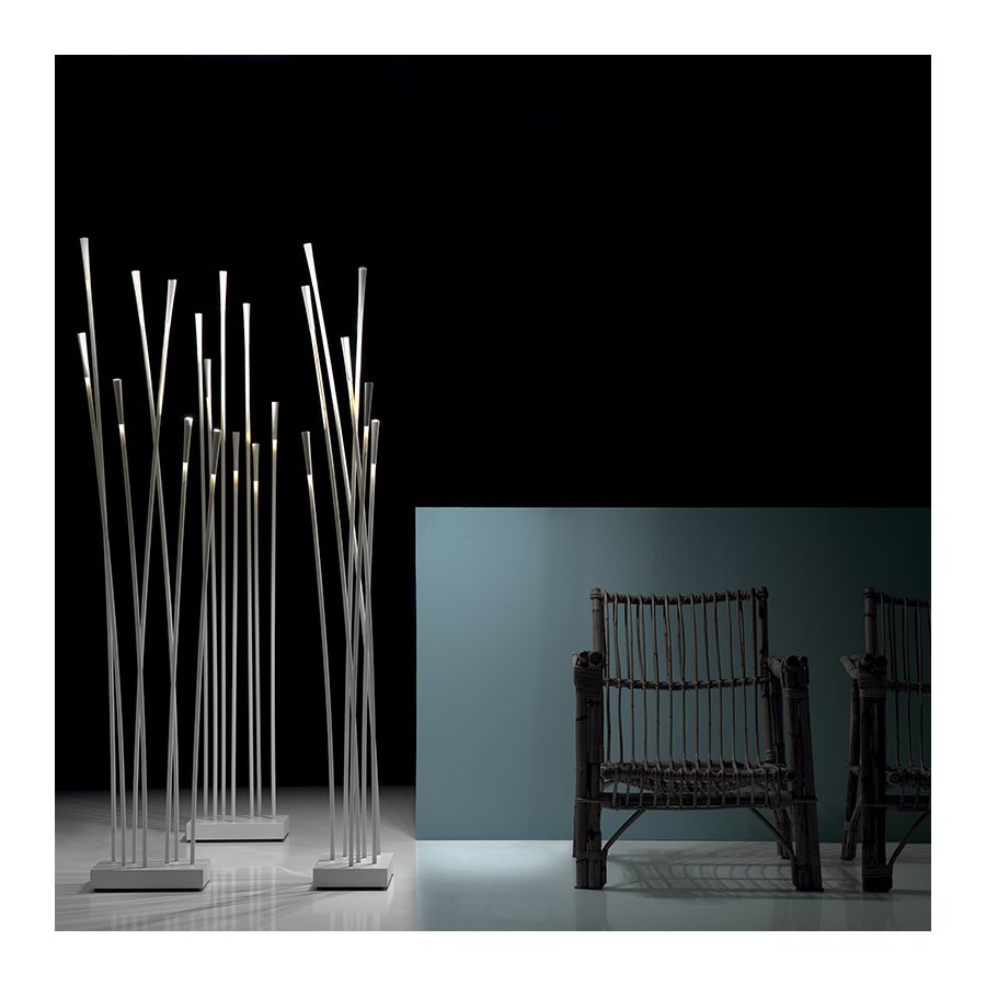 Kollektionen består av tre olika versioner av golvlampor för inomhus- och utomhusbruk. Den första versionen inkluderar flera stjälkar som fungerar som ljusdiffusorer, gjorda av vitt plastmaterial förstärkt med glasfiber, med en ljuskälla på spetsen. Den metalliska vita basen är sprutmålad. Lampan drivs på nätspänning och har ett dubbelt LED-belysningssystem (24Vdc), försedd med separat strömbrytare. Den andra versionen består av enstaka stjälkar av samma material tillgängliga i olika höjder och försedda med en metallpåle för utomhusbruk. Den sista versionen är gjord av brunerad mässing och koppar med direkt ljusutsläpp.