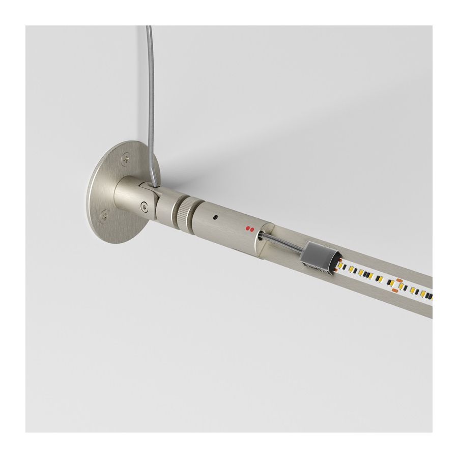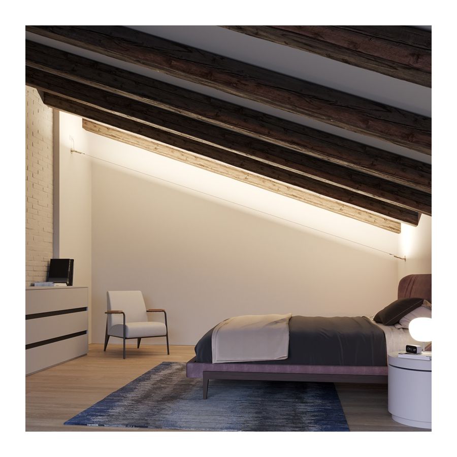 Metro uppfyller dessa behov perfekt och erbjuder många andra möjligheter med ett visuellt uttryck som är både minimalt och elegant. Tack vare lederna på väggfästena kan den ljusande remsan appliceras rakt, diagonalt eller skapa ett förutbestämt mönster och enkelt arrangeras för att rikta ljuset mot specifika punkter.