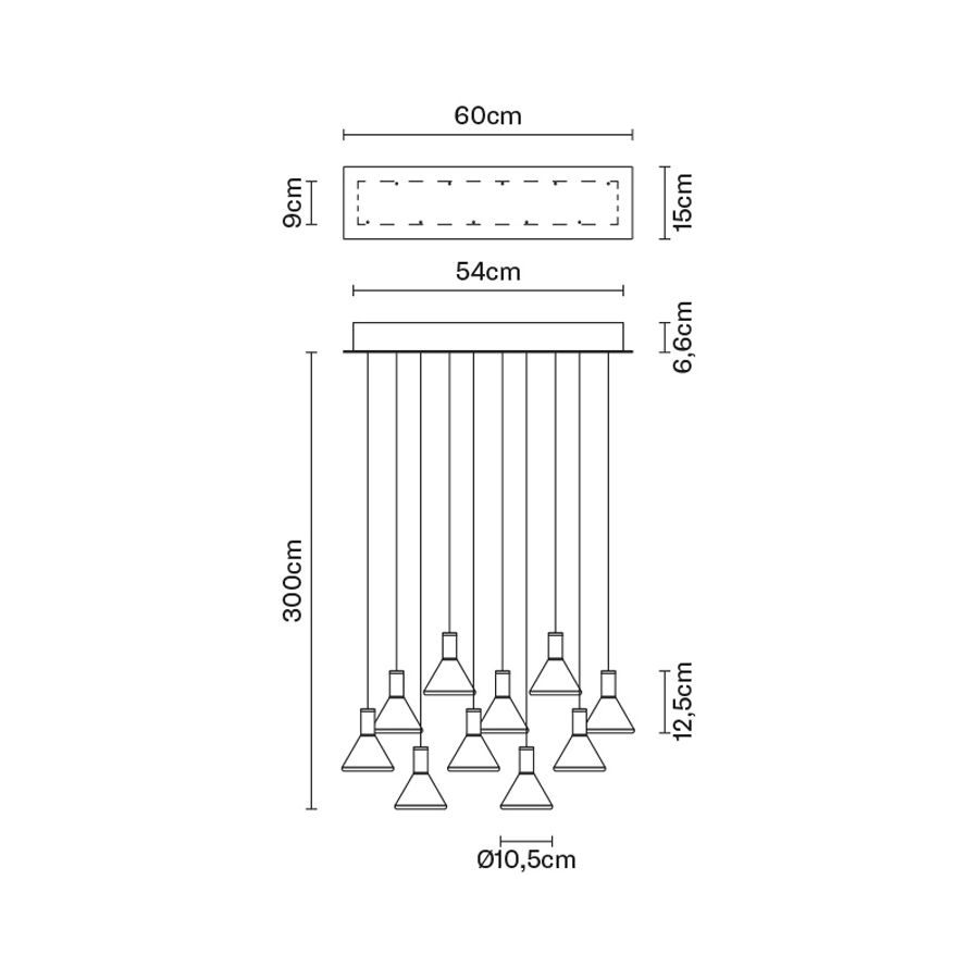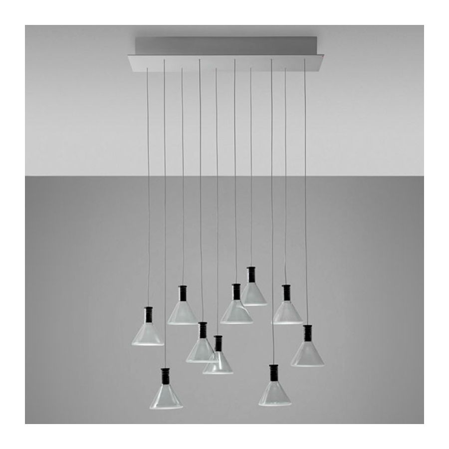 Multispot Polair-pendellampan har klara glasdiffusorer med frostat underrede och ramar som finns i svart eller koppar. Kollektionen har ett brett utbud av storlekar och former av takrosetter med ljusarmaturer enligt önskemål. Av den anledningen är lampan lämplig för alla miljöer och för skräddarsydda projekt.