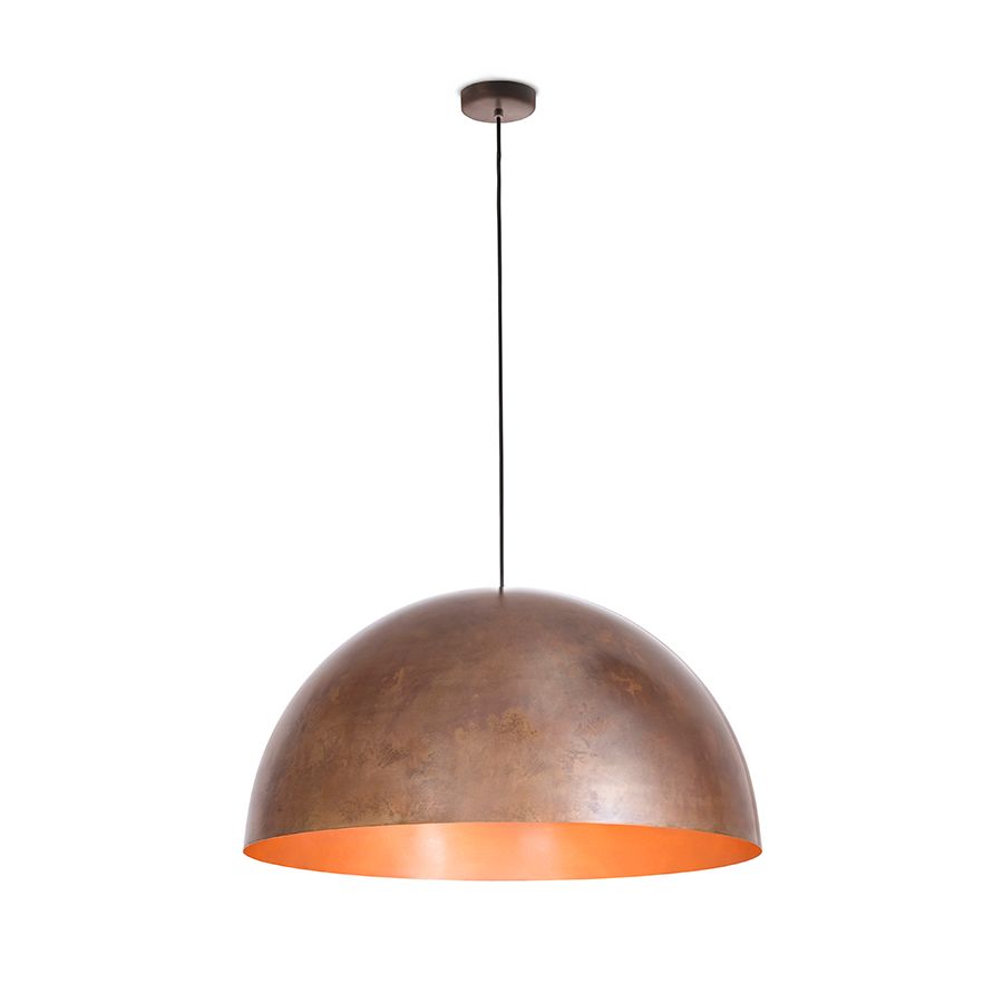 Pendellampa med en hel kopparstruktur, bruniserad på utsidan och polerad på insidan.