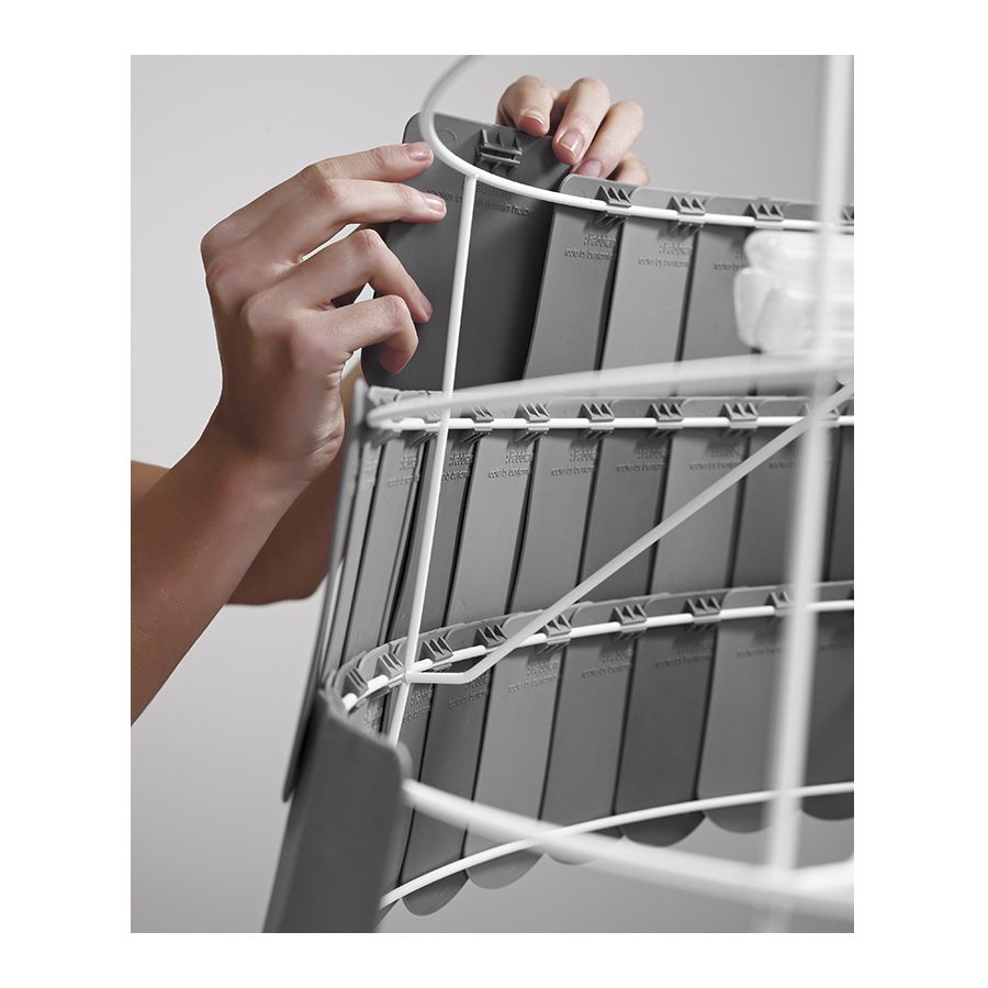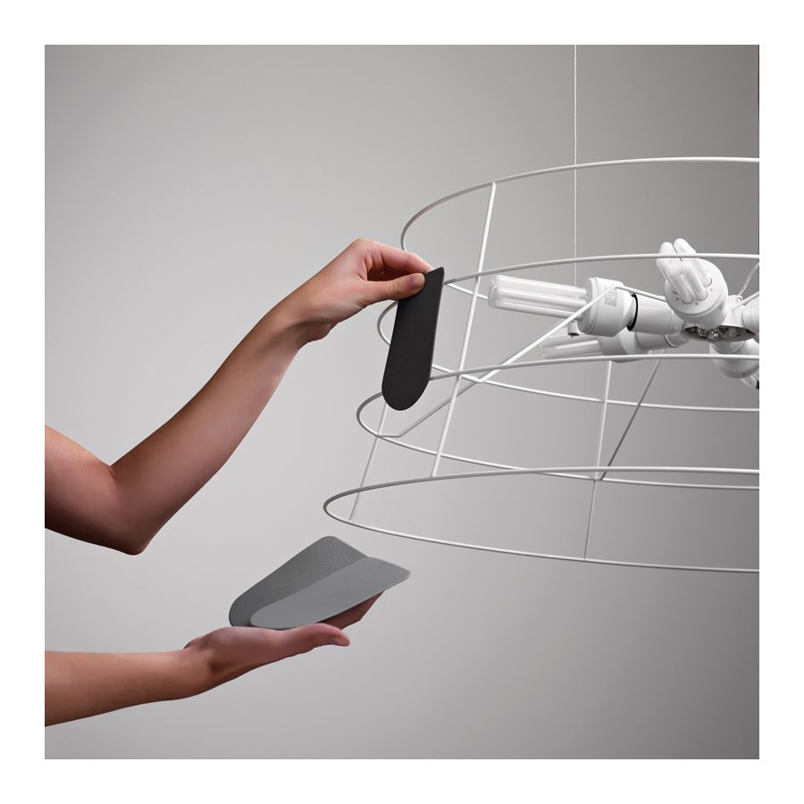 Roofer hänglampan har en mycket förfinad form täckt med många gummiplattor i olika färger (vit, grön, brun och grå). Den har en mycket lekfull stil, därför rekommenderas den för att karaktärisera miljöer som behöver förbättra sin stil och design.
