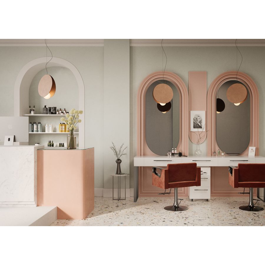Akoya-kollektionen omfattar en inomhusvägglampa med diameter 30 cm och två pendellampor med diametrarna 30 cm och 60 cm. Den är tillverkad av två metallskivor (finns i vit, antracit, corten och bronsfinish) som innehåller en munblåst glasdiffusor. Ljuskällan är en energieffektiv LED med integrerat drivdon och dimbar med fasavskärning.