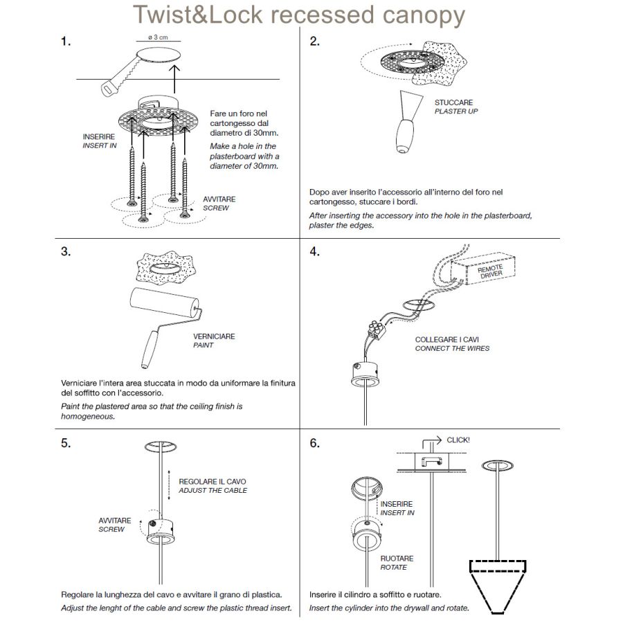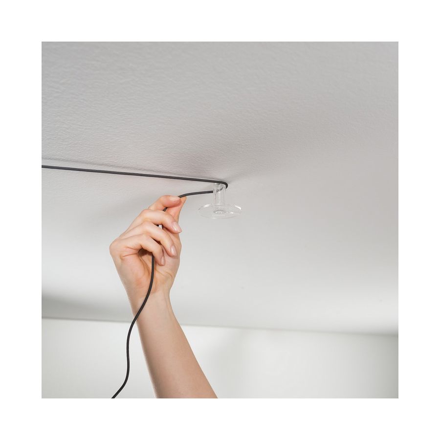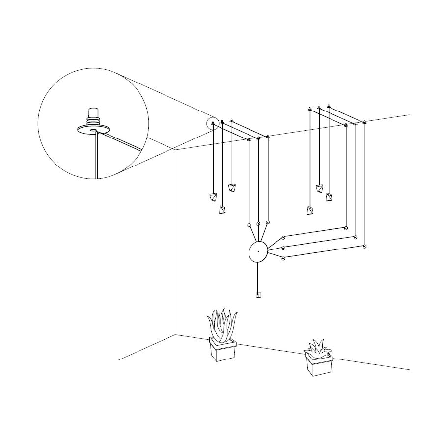 Inom kollektionen Tripla hittar du ett modulärt system som kan installeras efter rummets behov. Metallbasen bör installeras där rummets huvudströmförsörjning finns, antingen på väggen eller i taket, medan pendlarna kan flyttas runt i rummet tack vare en spole som stödjer kablarna. Ofta är strömförsörjningen eller uttaget inte centrerat ovanför ett bord eller andra möbelelement som behöver ljus. I alla dessa fall är Tripla-systemet en smart lösning där användaren kan belysa rummet kreativt och effektivt.