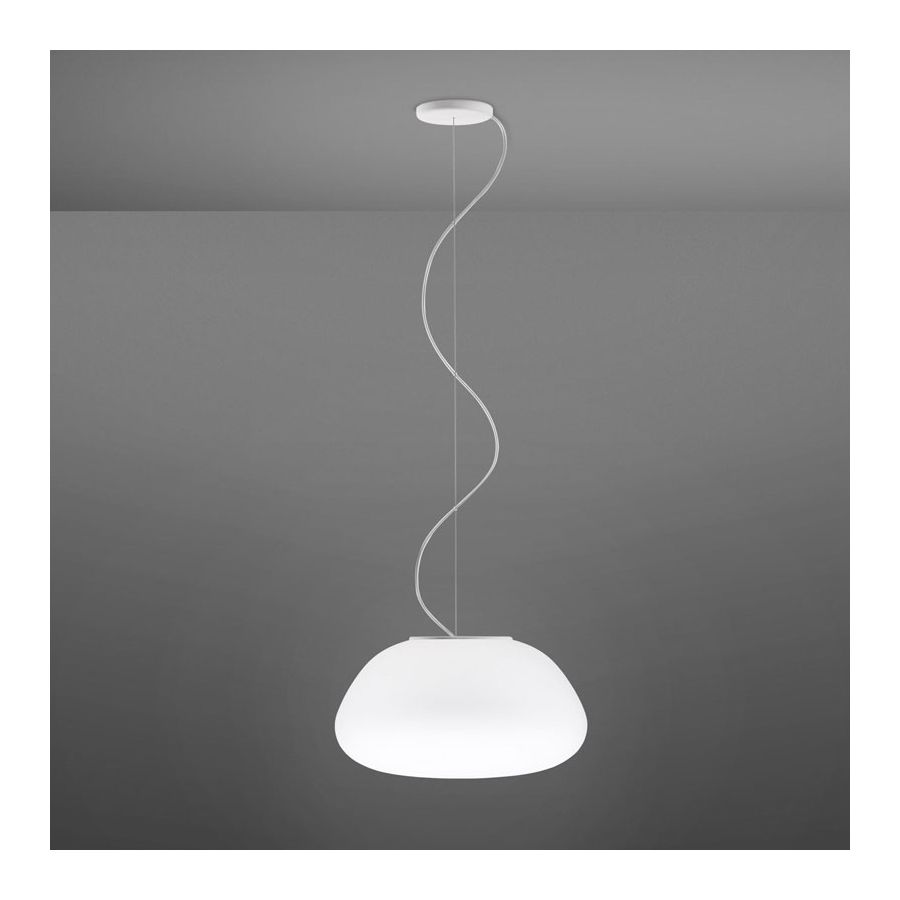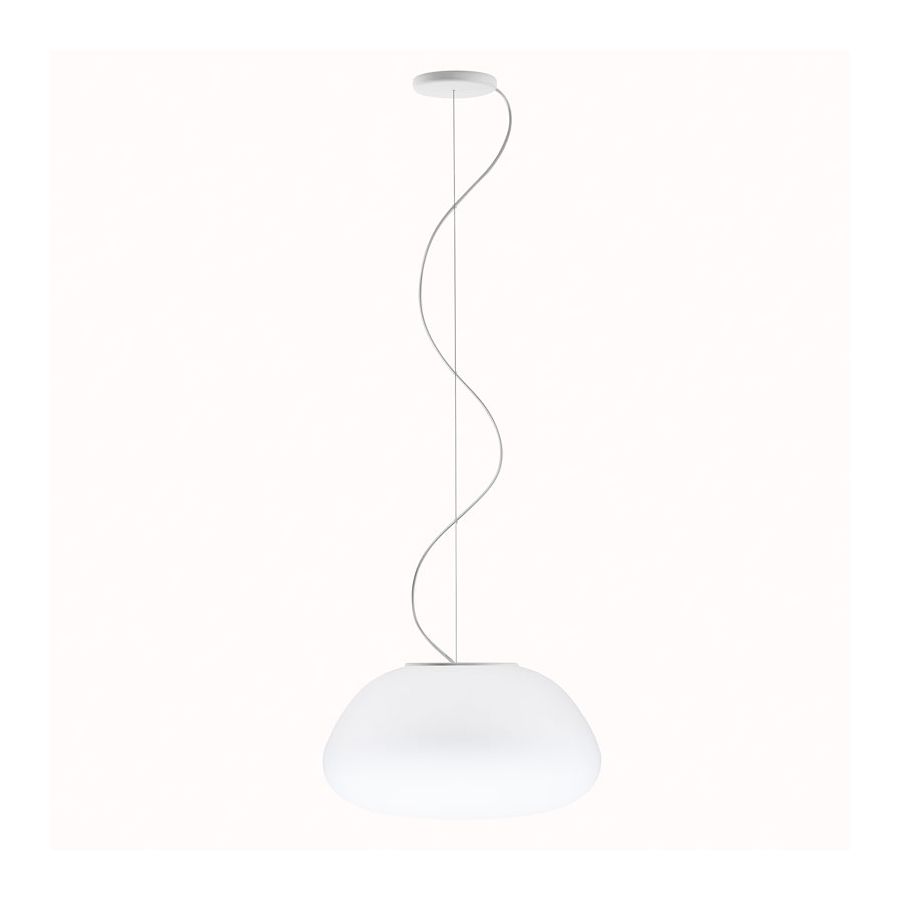 Lumi Poga-hänglampan har en diffusor i vitt munblåst glas med cirkulär och tillplattad form. Den finns med halogen-, lysrörs- eller med integrerat LED-lampfäste. Den är mycket väl lämpad för användning i hemmets vardagsrum men också på offentliga platser såsom restauranger och barer.