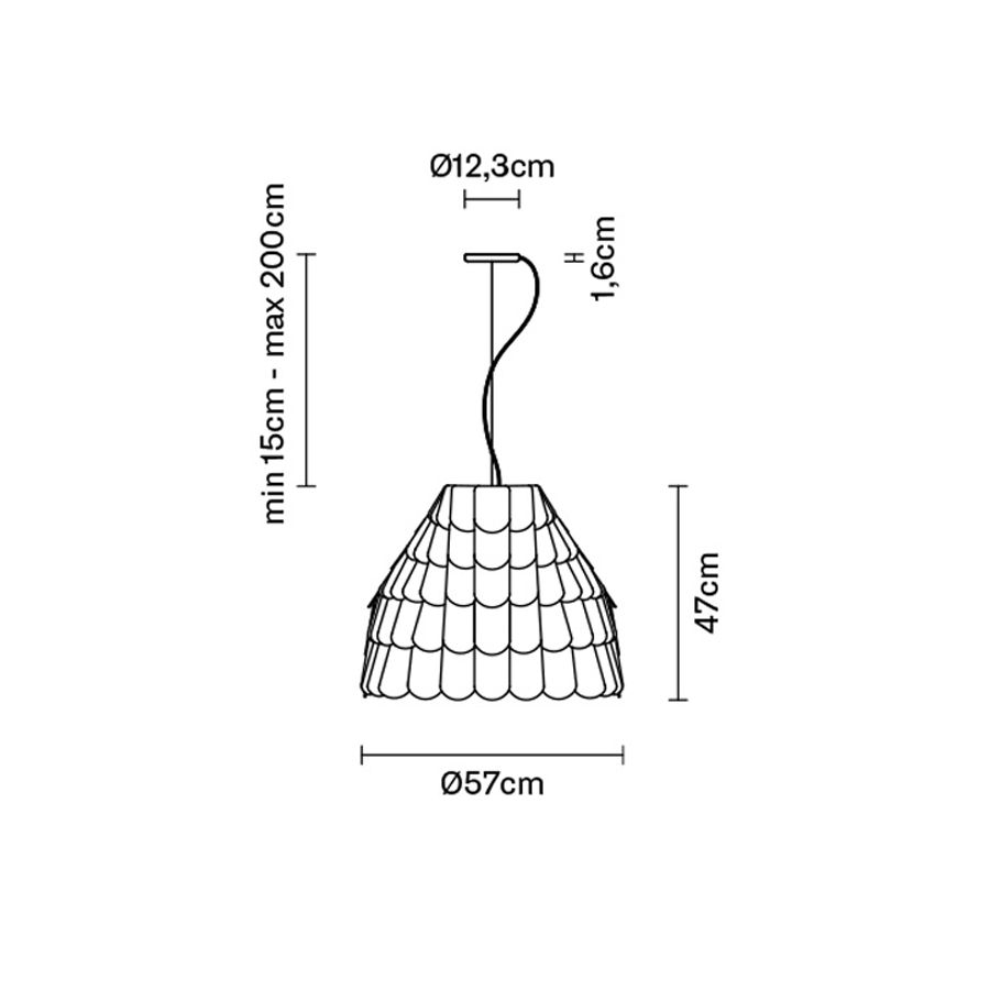 Kollektionen består av hänglampor för inomhusbruk, i fem olika former, och kan också monteras direkt i takkoppen genom att helt enkelt förkorta kablarna. Stommen är täckt av skalor gjorda av ett halvstyvt gummiliknande material, i fyra olika färger (vit, grå, brun och grön), medan den runda diffusorn är i vitt tyg. Lampan drivs av nätström och är lämplig för användning med halogen- och fluorescerande lampor.
