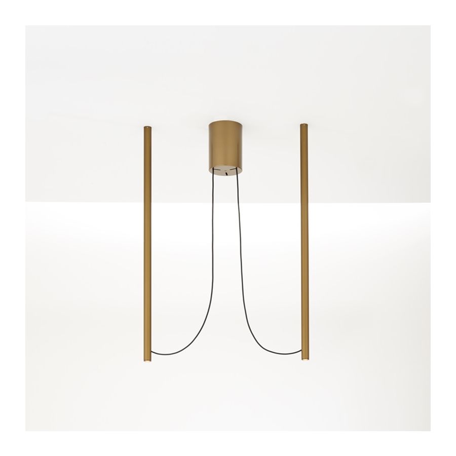Ari är ett modulärt belysningssystem som kan anpassas till små och stora utrymmen, till olika stilar och användningsbehov. Från den avskalade enkelheten i versionen med ett enda ljuselement, projektets matris, kan den kombineras upp till versionen med 16 element. Elementen, enkla och rena, i olika längder, kan installeras i taket fritt eller enligt precisa geometriska mönster runt den centrala rosetten. Detta är Ari:s största uttryck: några få grafiska tecken som i en samtida och minimalistisk tolkning omformar geometrin hos de klassiska ljuskronorna, och fyller samt dekorerar rummet med lätta och eteriska volymer. Ett nytt system som förbinder dåtid och nutid. Ett formellt och rent formspråk som översätter och syntetiserar traditionella former.