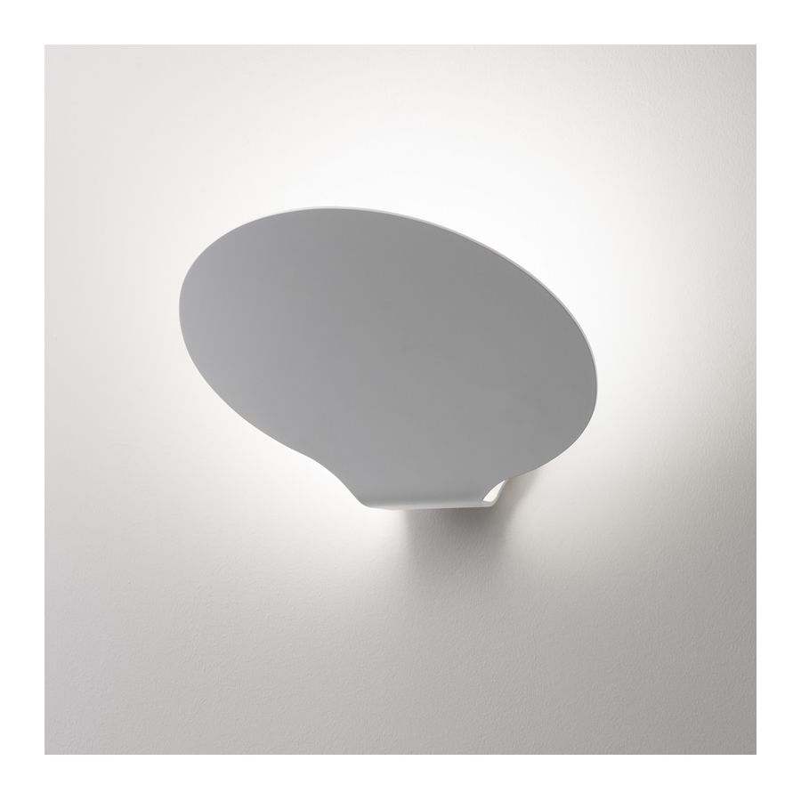 Glu-vägglampan, i matt vit metall, skapar en varm intim atmosfär tack vare sin kurviga form som tillåter att ljuset indirekt diffunderas på väggen och skapar en behaglig effekt. LED är integrerad för att säkerställa hållbarhet, ekohållbarhet och effektiv belysning.