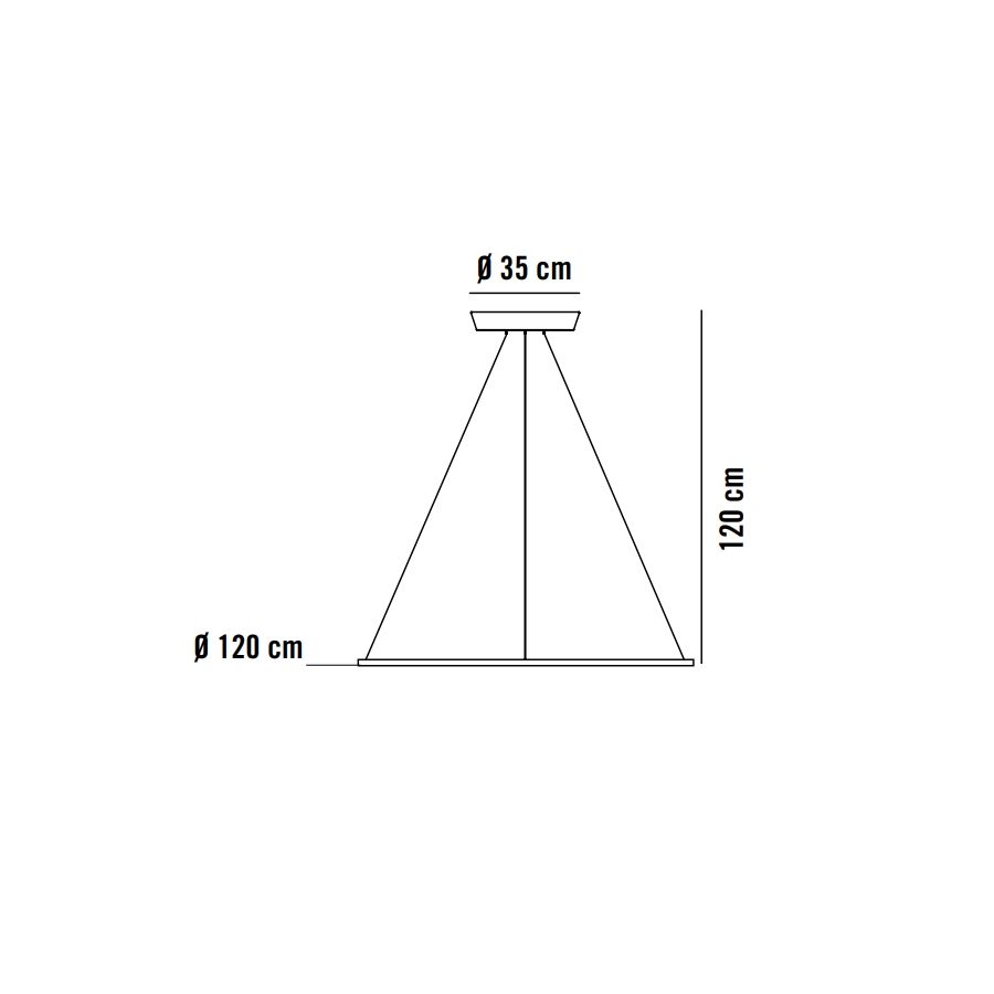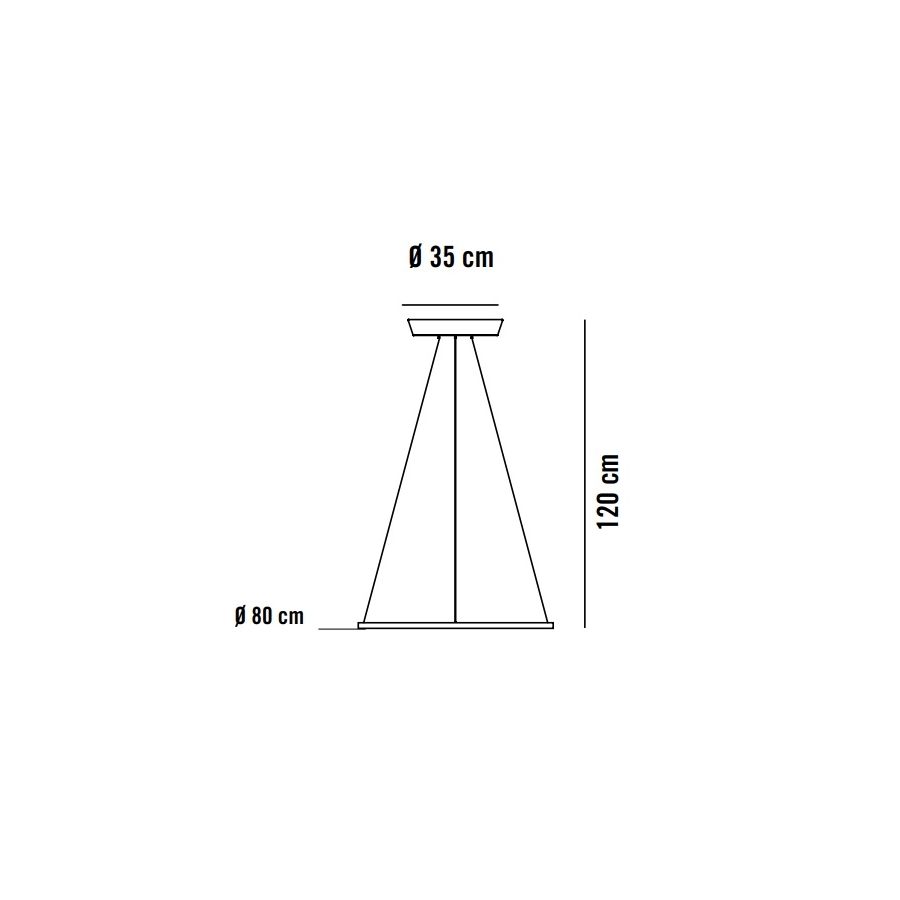Setet av pendelarmaturer är ett verk uppbyggt av metallringar, prydda med mässingsdetaljer. Varje ring innehåller en opal akryldiffusor både på utsidan och insidan, vilket möjliggör en jämn spridning av en varm, integrerad LED-ljuskälla. Denna noggranna komposition erbjuder enastående mångsidighet: genom att kombinera de fem olika ringdiametrarna visas ett stort urval av möjliga volymer och former.