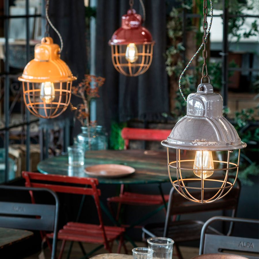 Industrial Cage takpendel från Ferroluce, kombinerar retro- och industriella designstilar. Exklusiv belysning som förfinar inredningens stil och atmosfär.