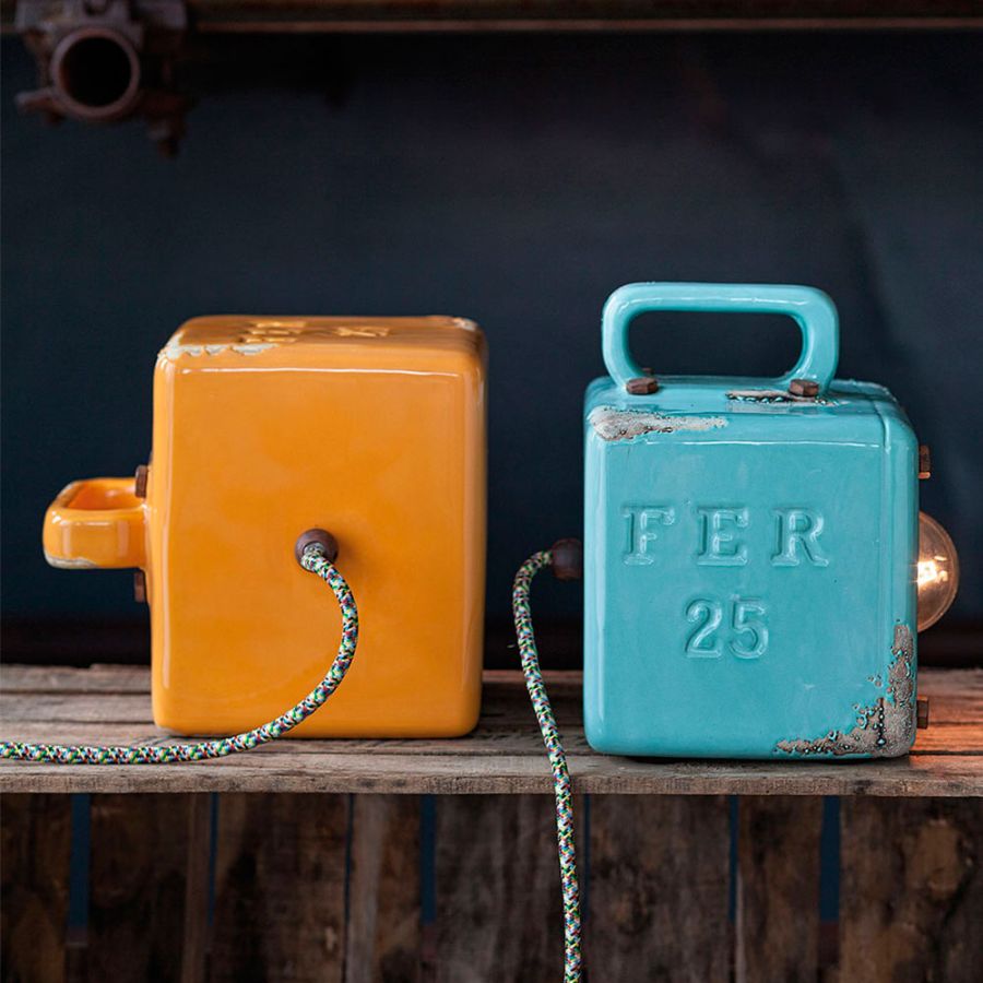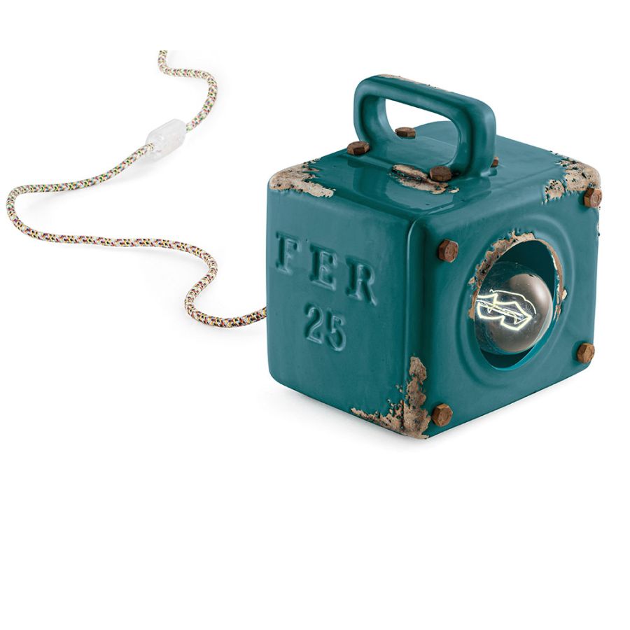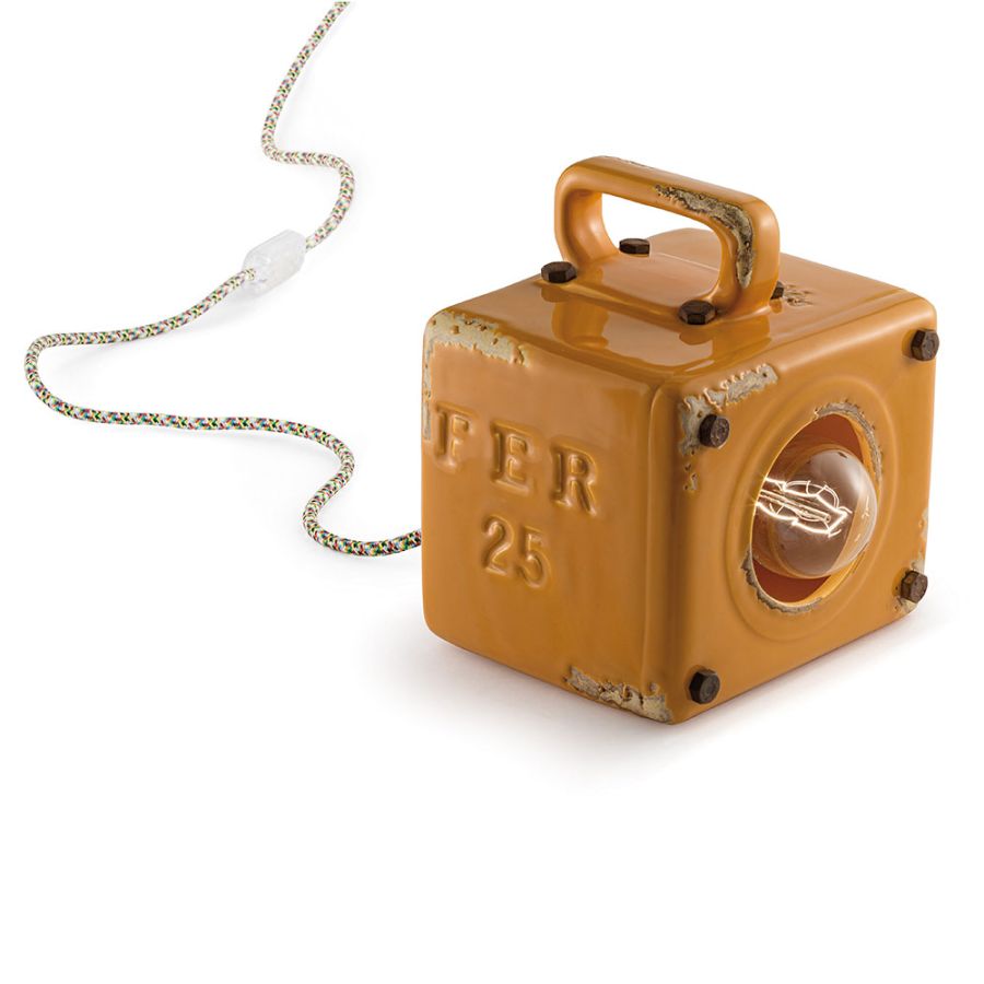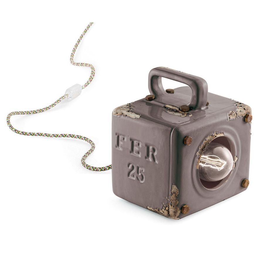 Ljusa färger, blanka ytor och förfinade spår av tiden, för en samtida profil i spåret av något som tillhör det förflutna. Skruvarna, med cor-ten-finish, är detaljen som fulländar denna bordslampa och ger den en fullt industriell smak.