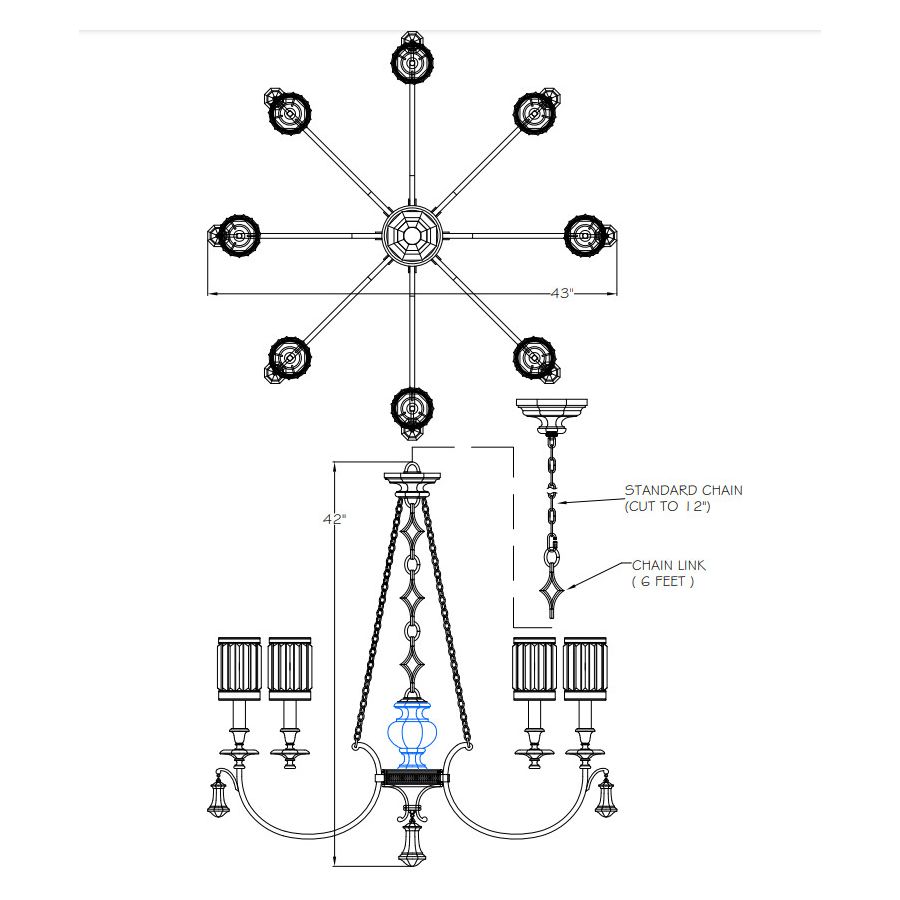 Eaton Place 43″ Round Chandelier is available in 2 models (Finish / Model number):