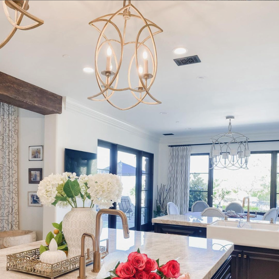 The exquisite seaside city of Cienfuegos on the southern coast of Cuba was built by French émigrés two centuries ago, and is known as “The Pearl of the South.” The 1920s were a unique transitional period in architecture and design in Cienfuegos, combining the old and the new. Metalworking innovations flourished among the artisans. This period inspired our eclectic collection. As part of our Refresh program, our Cienfuegos collection has been given a contemporary look with our bright “fresh” standard silver leaf or standard gold leaf finish with matching candlesticks, as shown to the right. Chandelier and sconce shades have also been updated for a coordinating modern look. Our classic Cienfuegos in antique bronze, weathered greige, and gold with textured natural greige fabric shades are also featured.