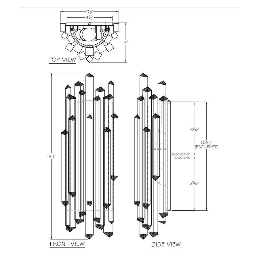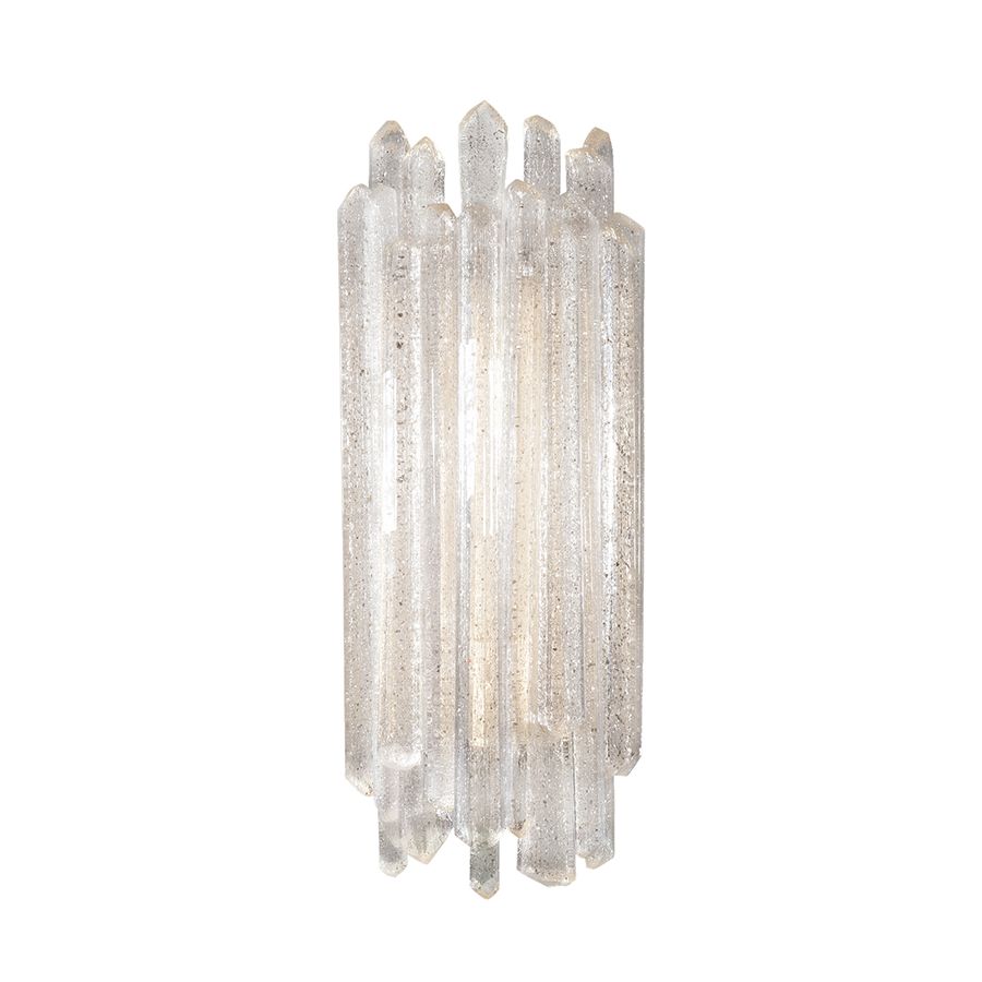 Building on glass techniques over 2000 years old, and using the core element of natural quartz, the spires on this sconce is worked by hand at over 2000 degrees. The raw crystal spires are then rough cut and hand polished to expose the inner core to light.