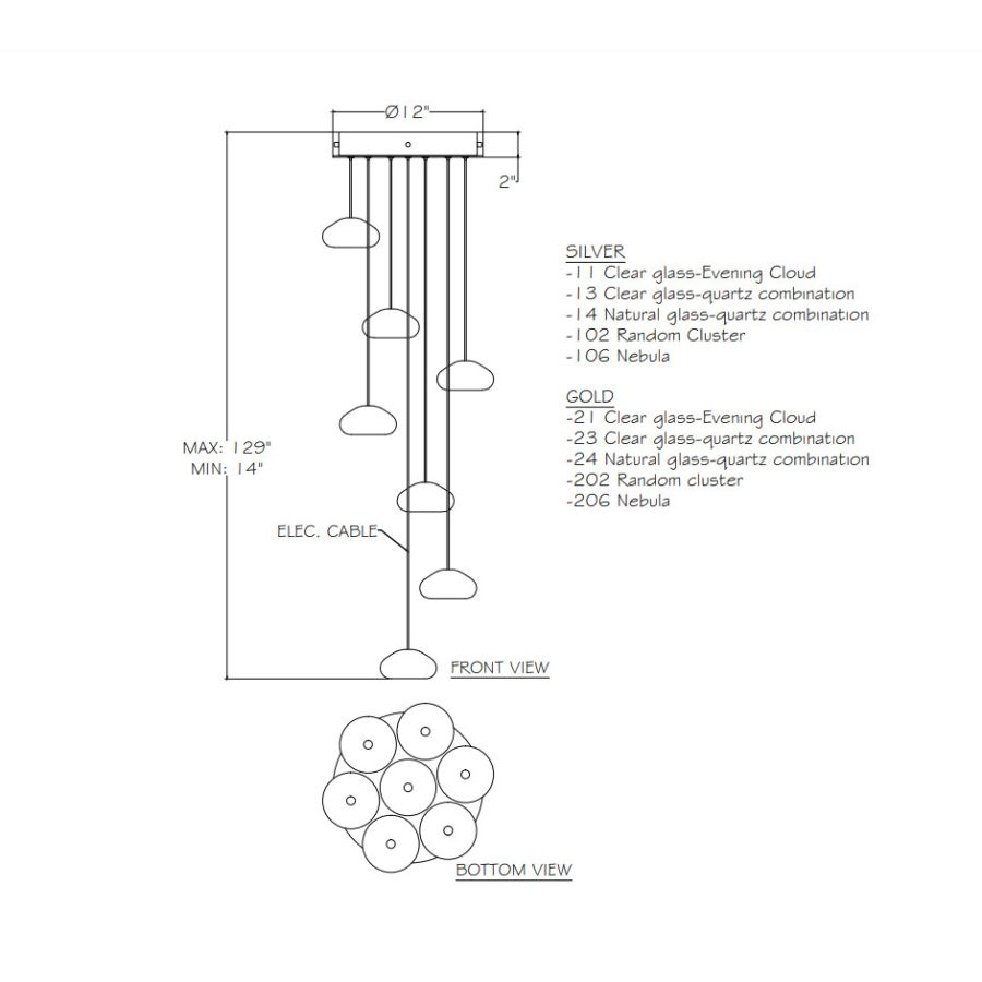 TBorn from the core elements of Earth, inspired by the beauty of nature, and created by the sculpting hands of master glass artists. A collection of precious drop lights as wondrous and unique as nature itself. Available in standard silver leaf or gold-toned silver leaf finish, and your choice of five hand-blown glass options. Custom finishes and custom sizes available on all canopies.