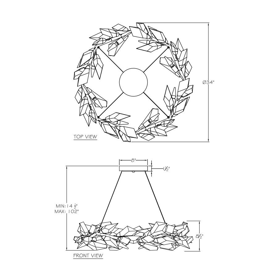 A collection inspired by nature and its majestic forests, Forêt features modern branches adorned with bold, hand-cut faceted crystal leaves. Merging the space between modern to traditional, Forêt will be the dramatic centerpiece in any interior design. Offered in your choice of standard silver leaf or standard gold leaf.