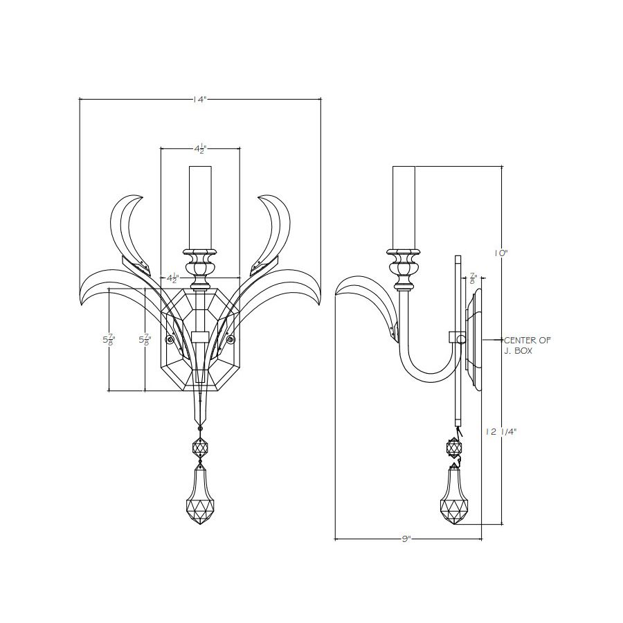 Sconce in warm muted silver leaf finish. Features beveled crystal accents.