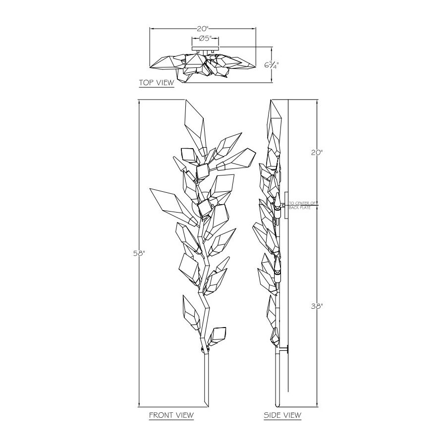 Inspired by nature and its majestic forests, this silver leafed Foret sconce features modern branches adorned with bold, hand-cut faceted crystal leaves. Also available in gold leaf.