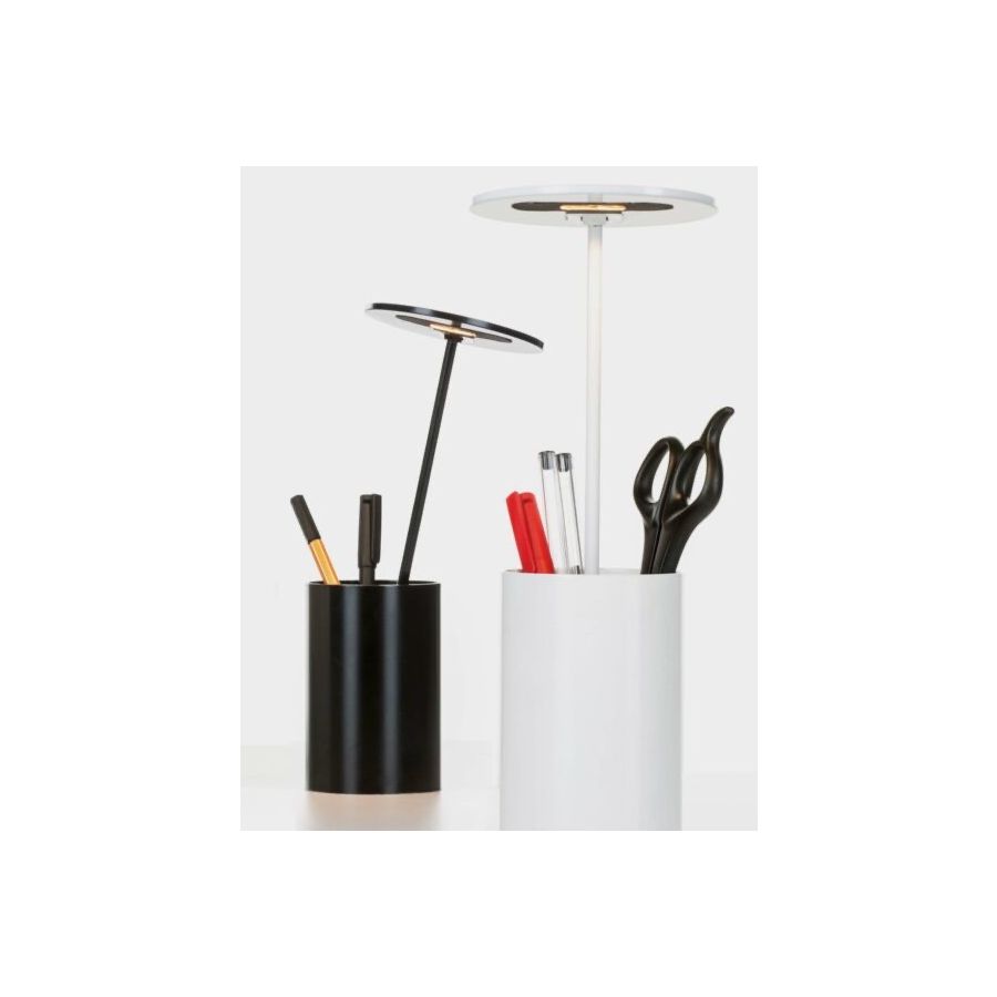 The table lamp E.T. is a helpful little buddy. The combination of pencil holder and light is convenient, provides space and maintains order. E.T. is very versatile and ideal for libraries, the reception desk, the small home office or the children’s desk. The head can be swiveled and gives the object its own liveliness. Available in many colors E.T. will quickly find it’s new home.