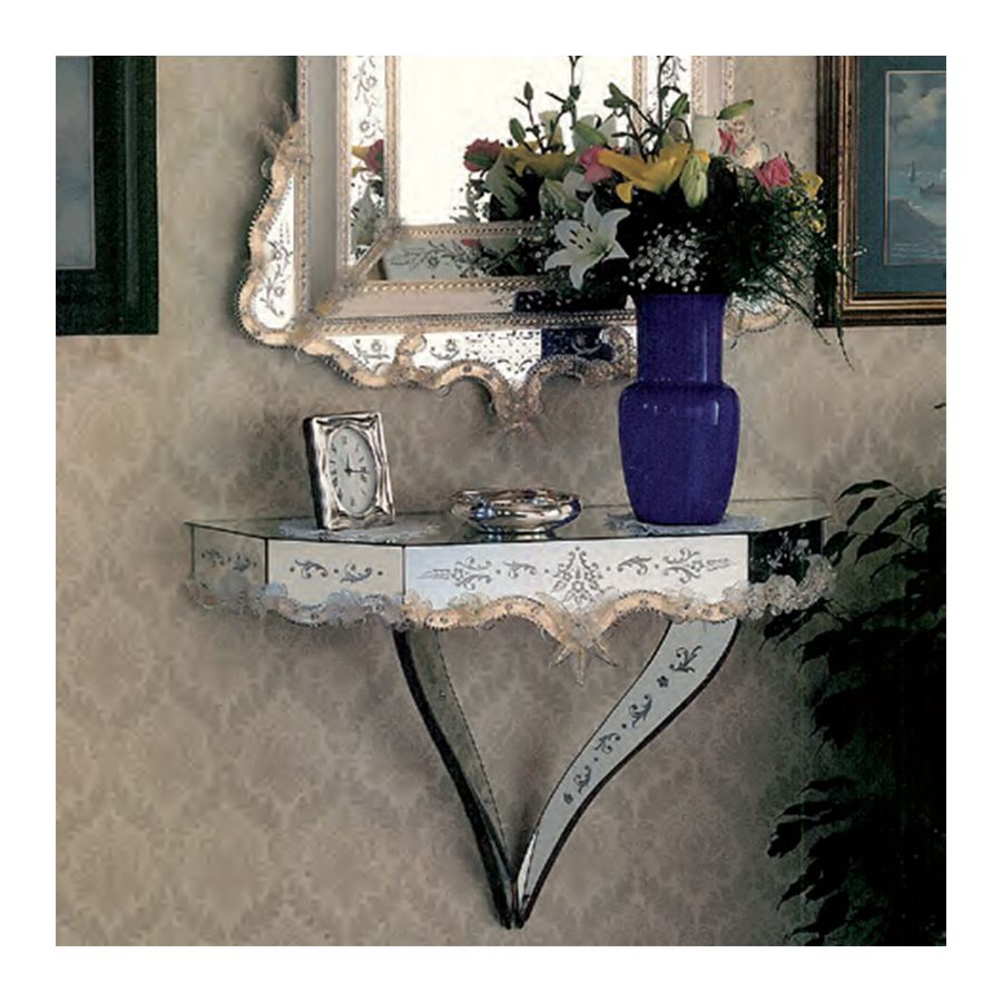 “Veneziani” consolle with glass frame, grinded hand engraved crystals.