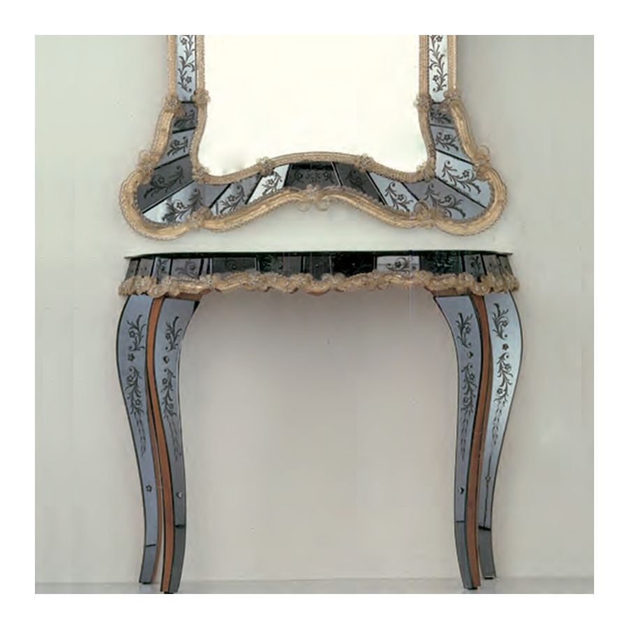 “Veneziani” consolle with glass frame, grinded hand engraved crystal.