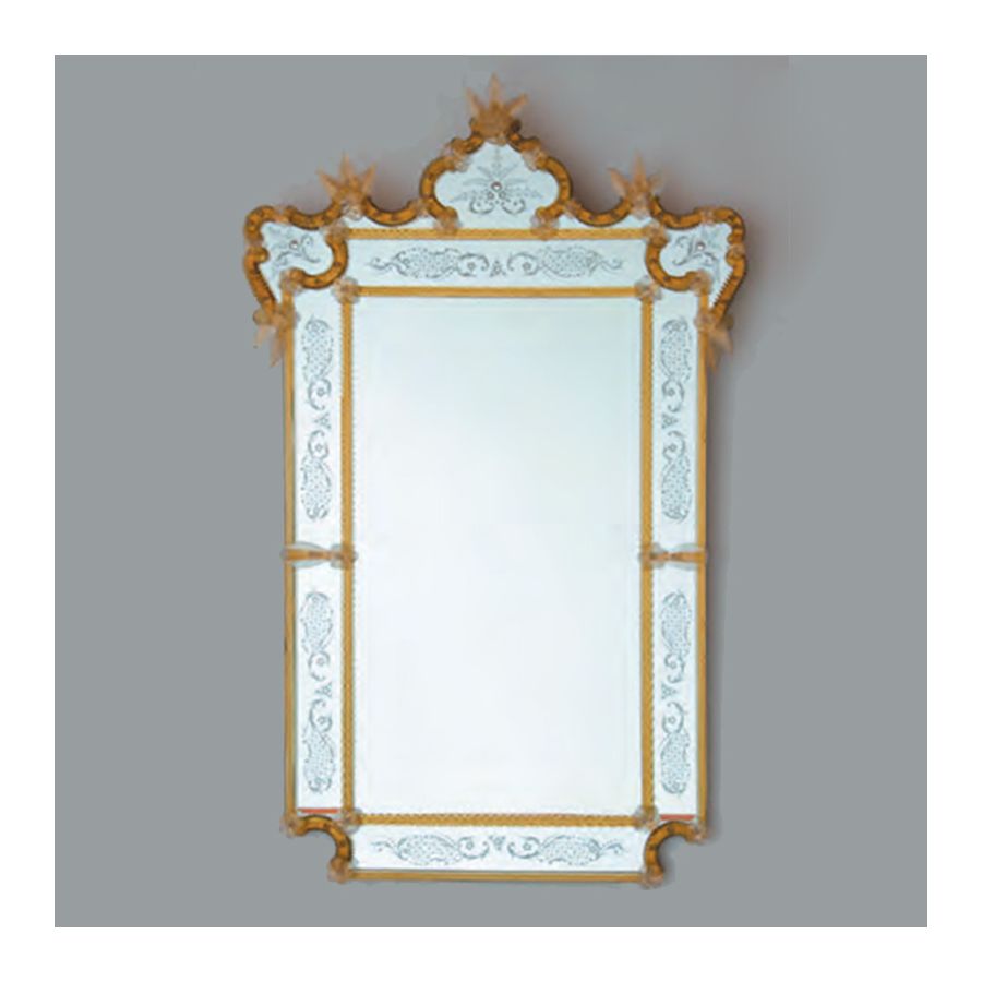 Murano glass mirror in Venetian style, handmade and hand engraved.