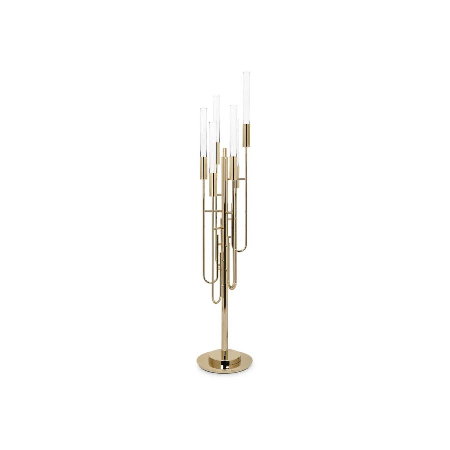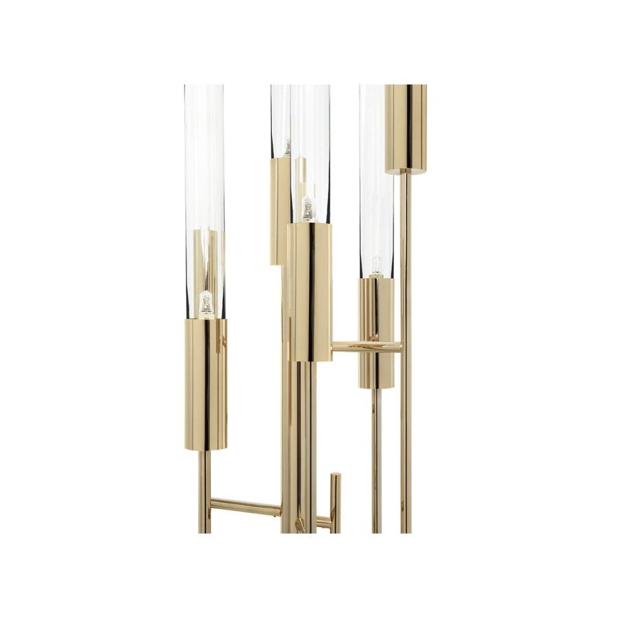 Discover the unique Gala Floor Lamp, elegantly made of gold-plated brass and crystal glass. This modern floor lighting solution combines classical design with a modern approach. It is the ideal contemporary shape to take a step further in interior design. This masterpiece is the touch of luxury needed to create a prestigious ambience, whether in a lounge or a hallway.