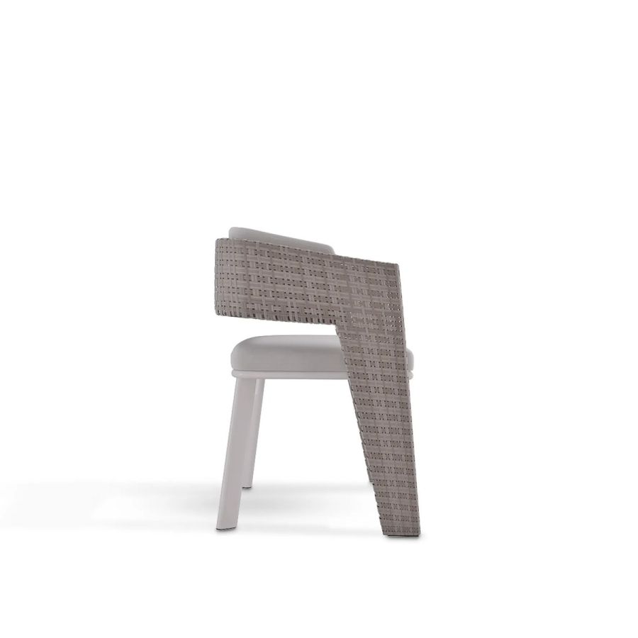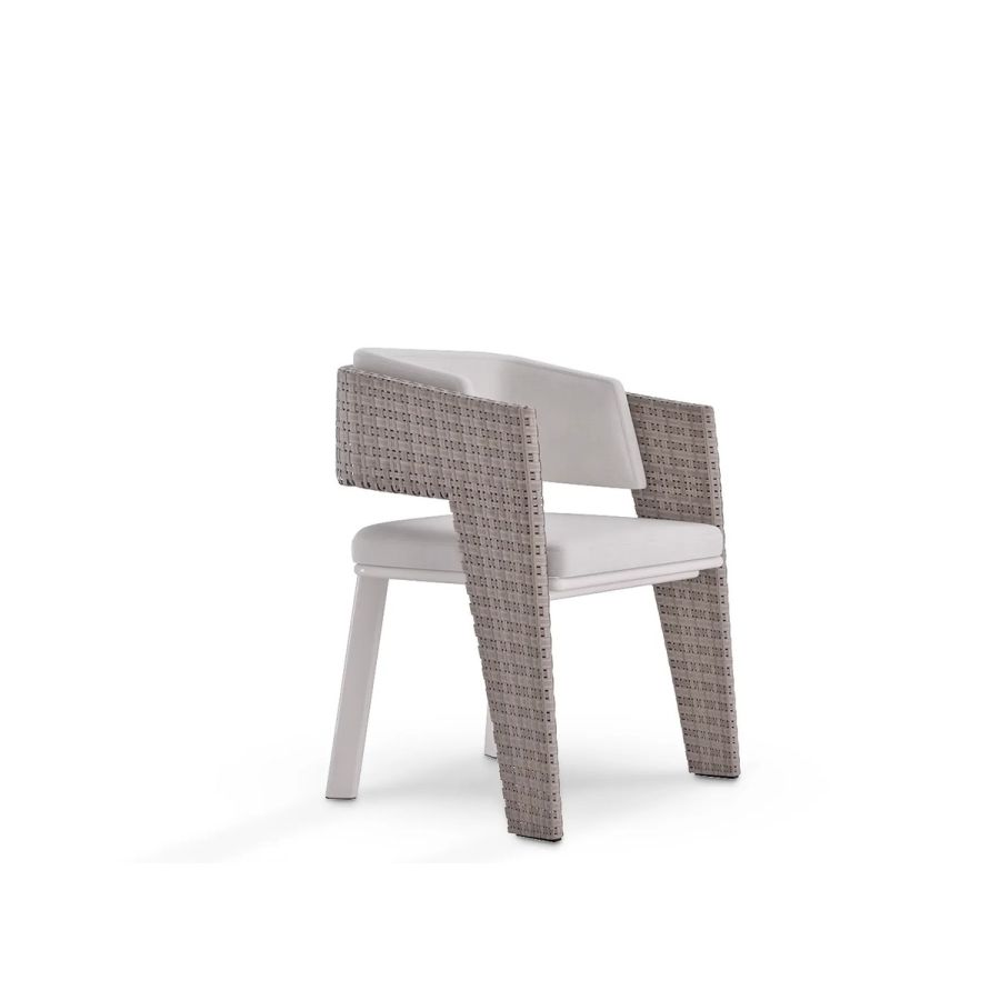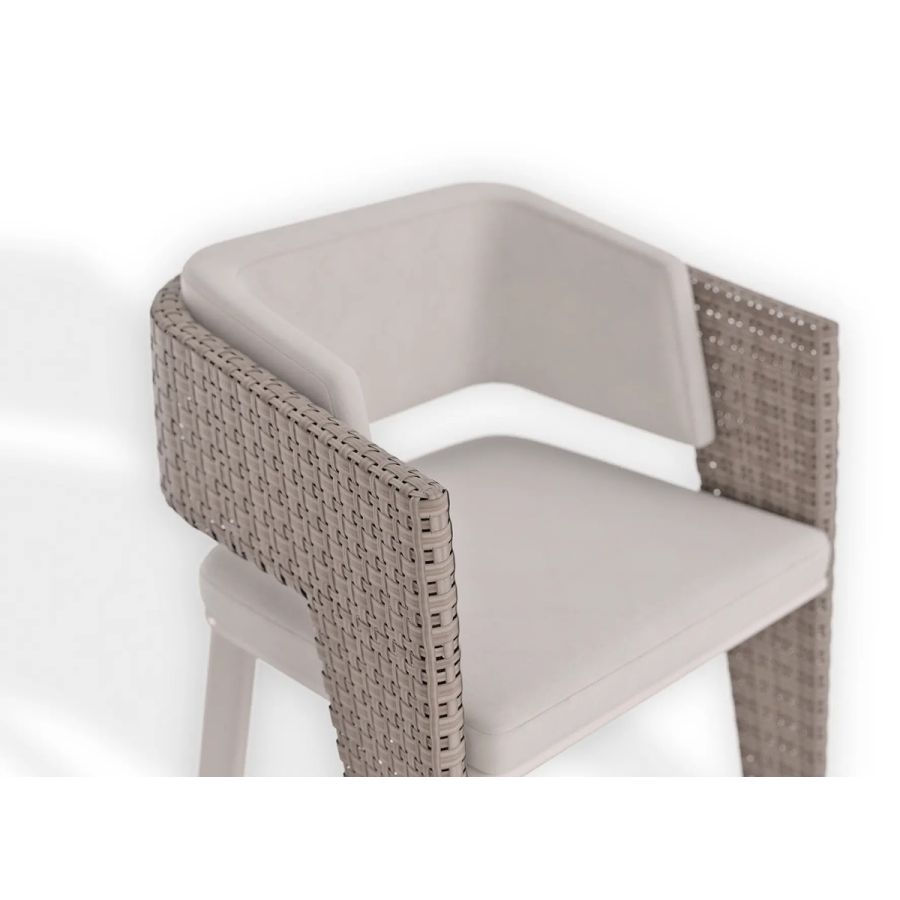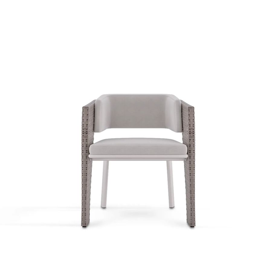 Galea is a glamorous outdoor dining chair that blends ancient with modern. It draws inspiration from an helmet worn by warriors in the Roman Empire and is brought to life through traditional weaving technics from Indonesia, combined with Portuguese exquisite Metal work for a durable and resistant outdoor piece. Made with Stainless Steel, Powder Coating & Synthetic Mesh this elegant chair with an Seashell Color is perfect for a relaxed yet luxurious outdoor.