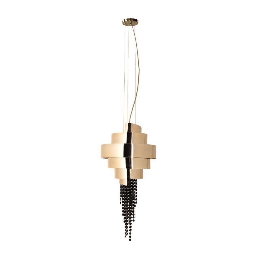 Inspired by innovative architecture, the Guggenheim Pendant Lamp is the embodiment of modern luxury. Following the success of the iconic chandelier, this pendant light promises to capture the attention of anyone who enters the room with its black crystals and gold-plated brass.