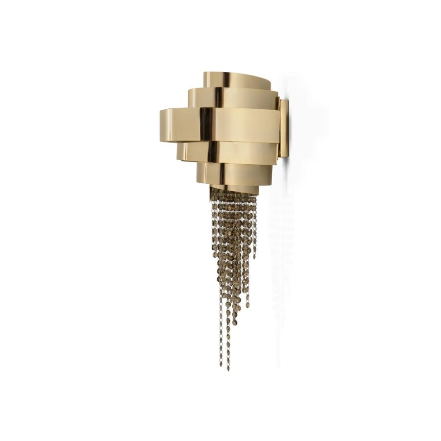 The Guggenheim Wall Lamp is a stunning addition to the family of awe-inspiring art. The design is a magnificent combination of gold-plated brass and crystals that promises to dazzle everyone in the room. This avant-garde creation will inspire your projects, forging the most exquisite and elegant ambiance. Add a touch of sophistication to your interior with this remarkable wall light.