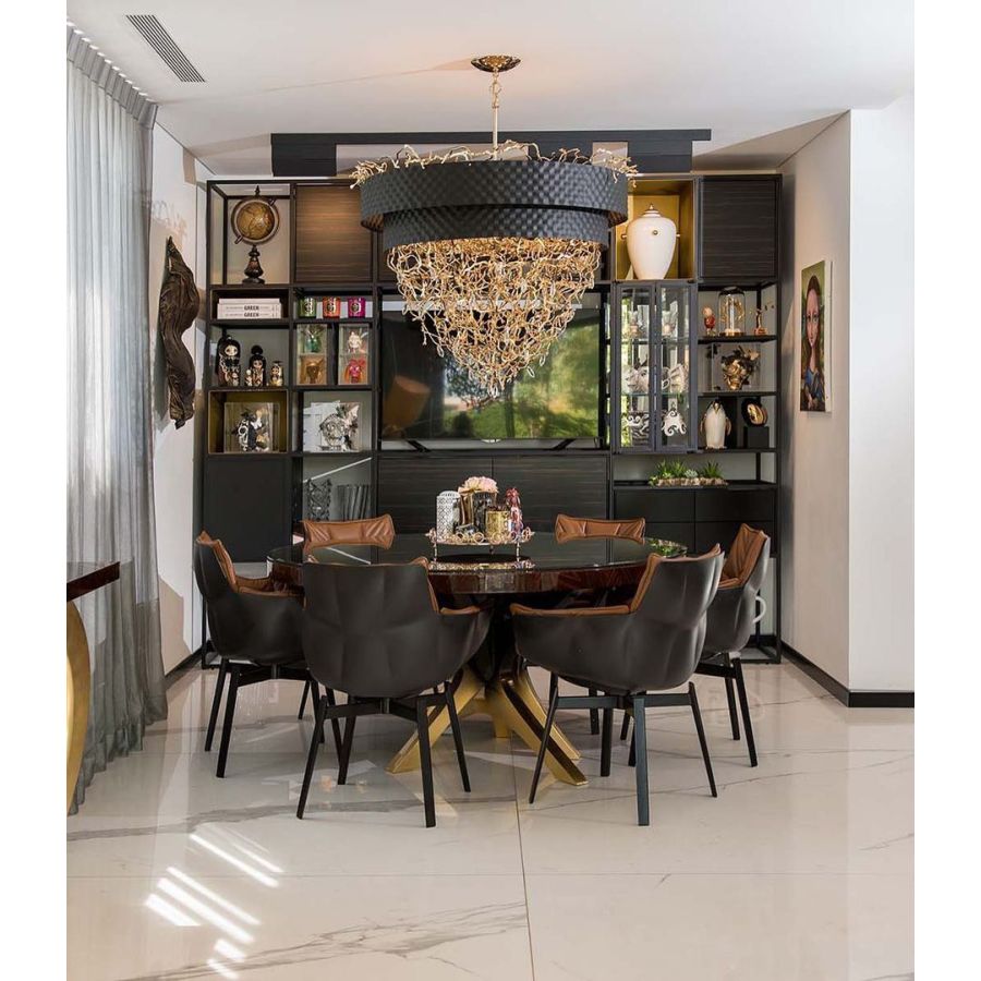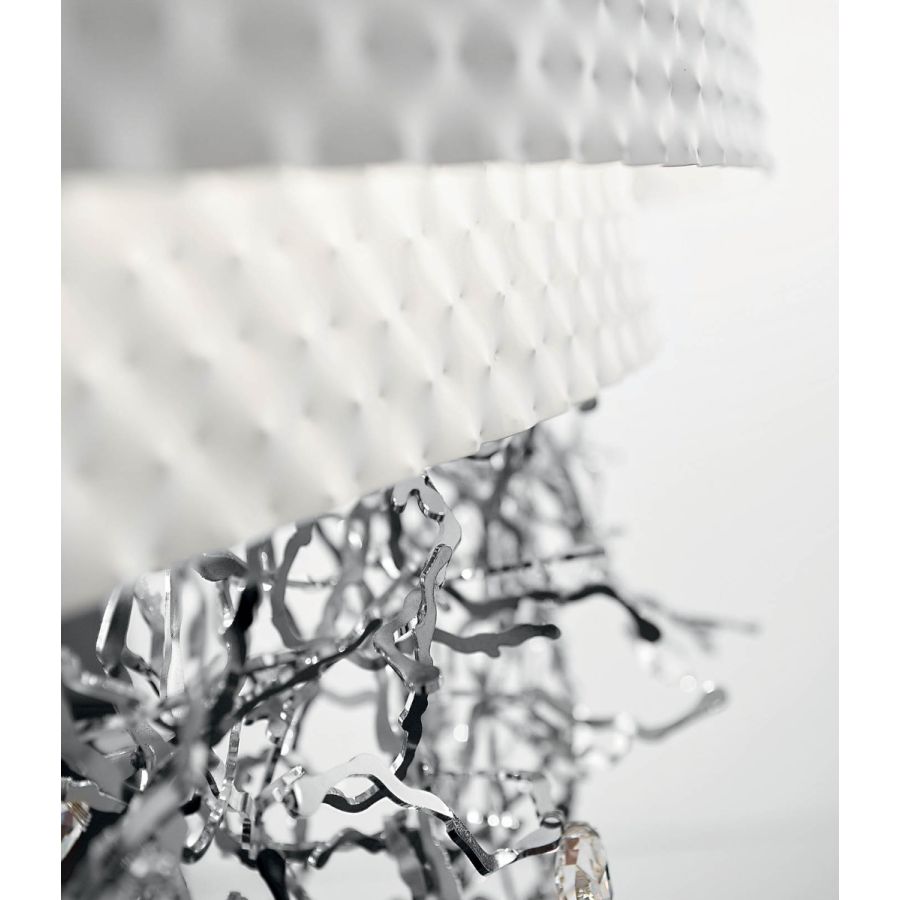 Geometric shapes and metals interweave suspended in air with crystal gems to embellish any setting.