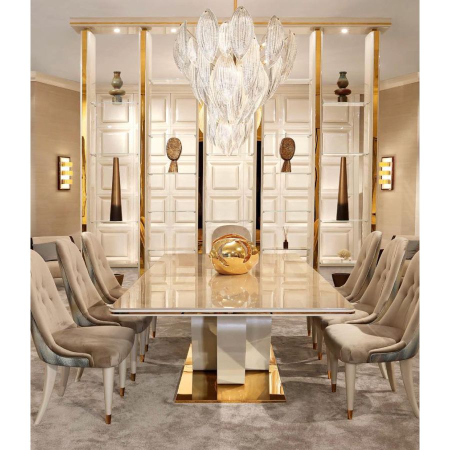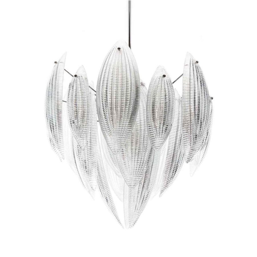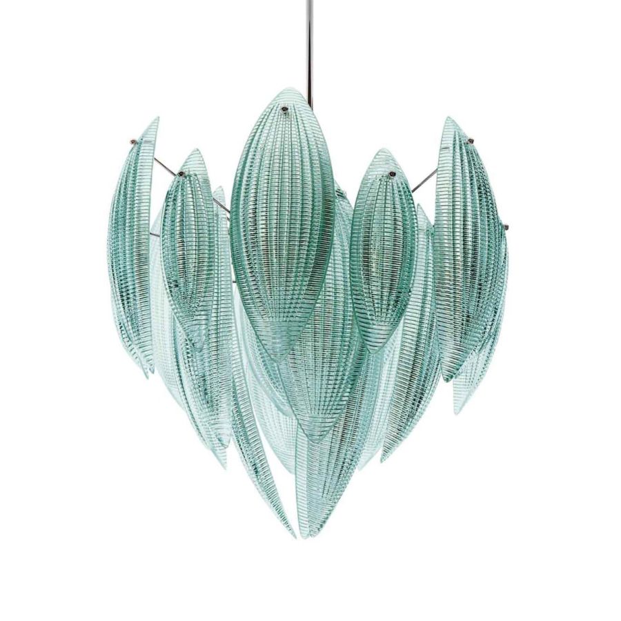 Murano glass available in the following finishes: white, gold leaf, silver leaf, transparent, bronze and aquamarine.