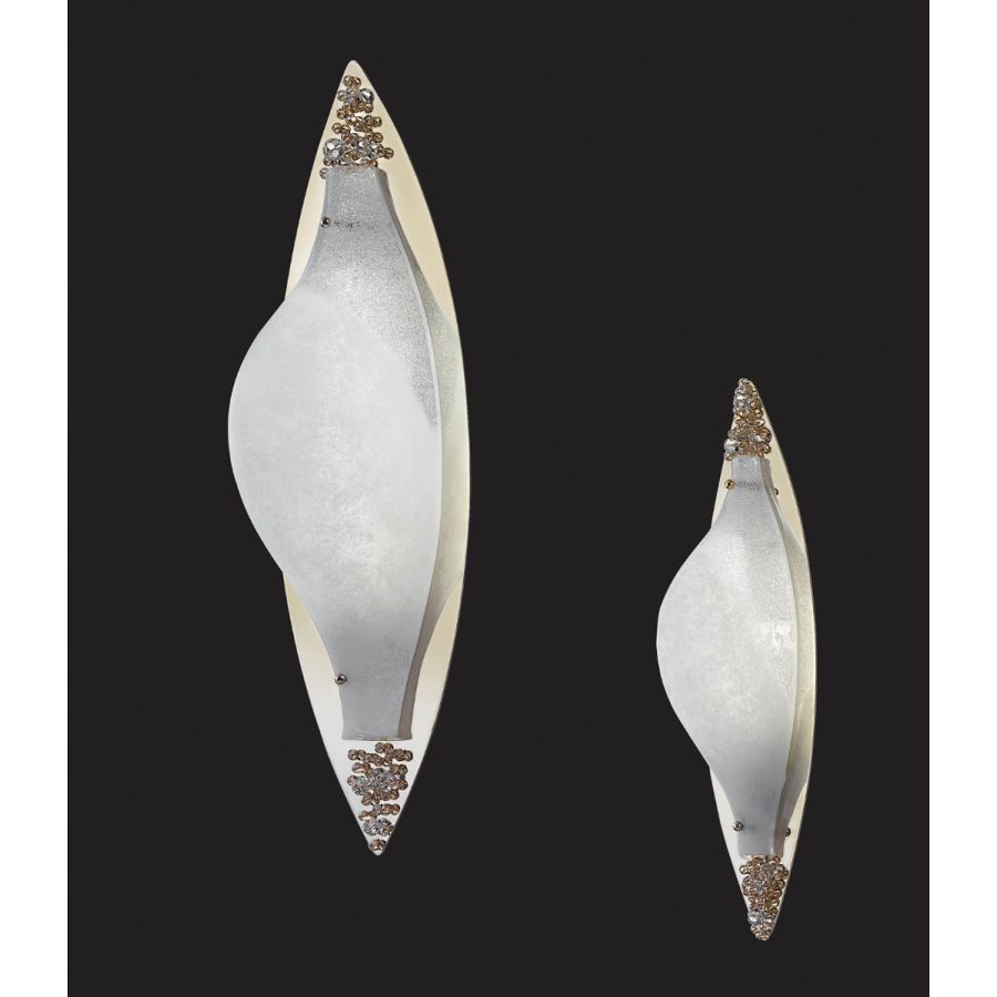 White Murano glass diffusers worked with grit band and wrought effect. The collection is adorned with crystals.