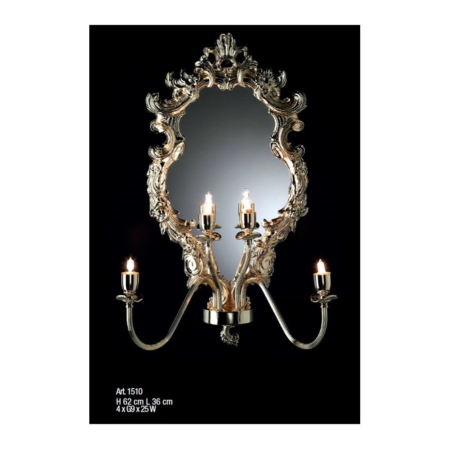 Mirror with lighting Luigi XIV style. Lighting item that diffuses the light with great effect in the surrounding environement creating a warm and welcoming atmosphere.