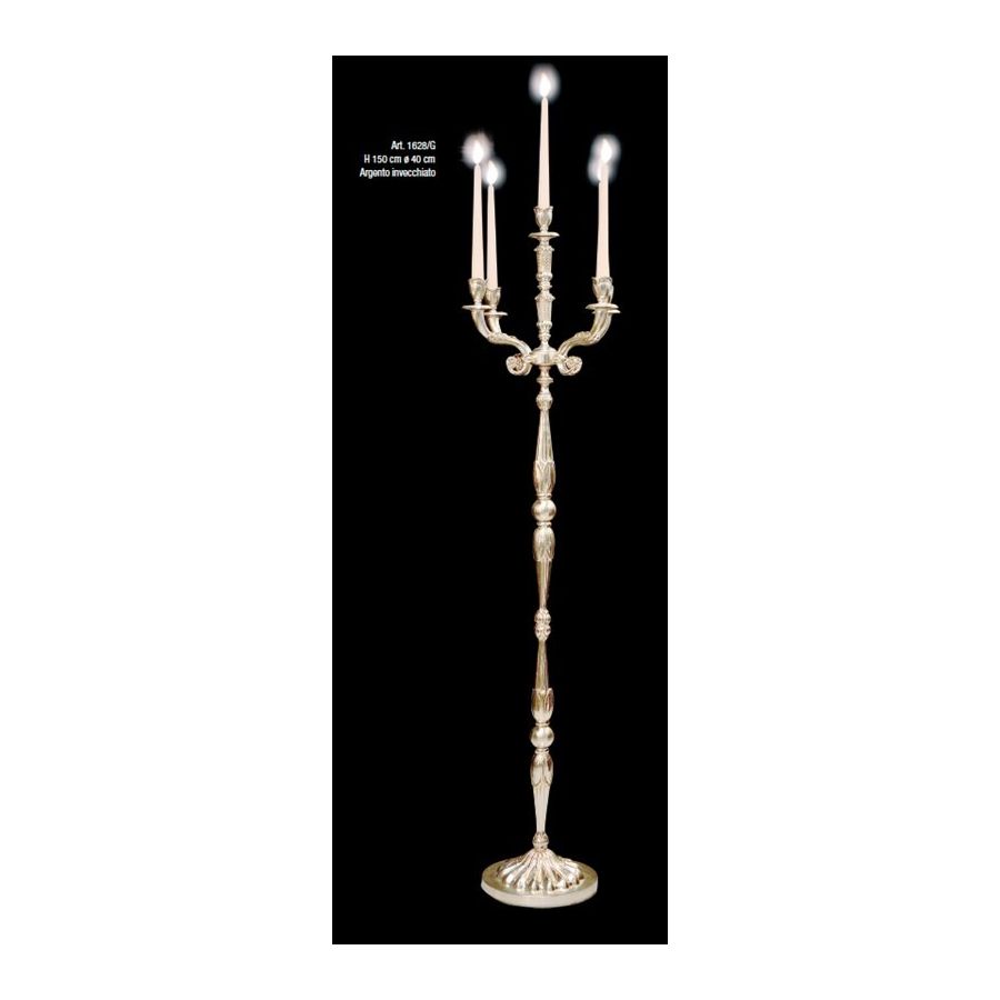 Big floor candlestick in brass silver finish. Lighting item that diffuses the light with great effect in the surrounding environement creating a warm and welcoming atmosphere.