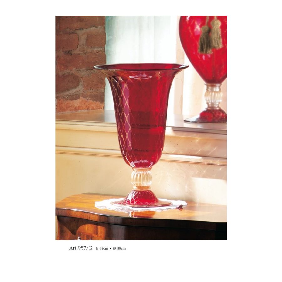 Large red Murano glass vase. An element of great stylistic value that makes the environment extremely elegant and refined