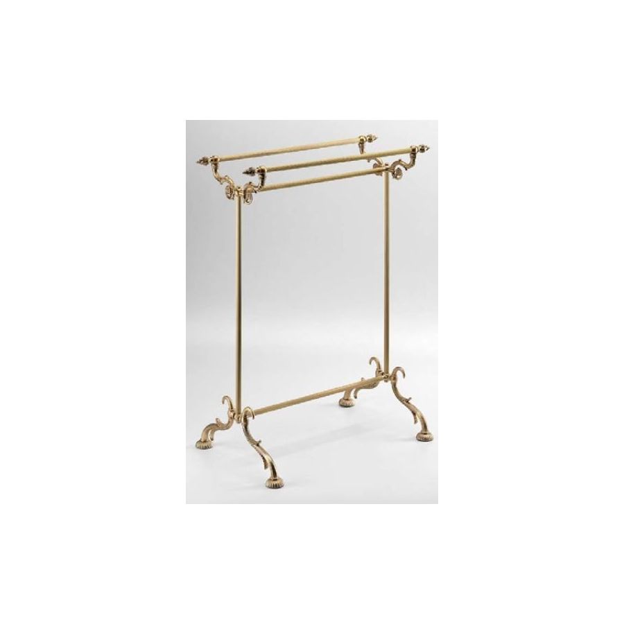Floor Towel holder with casting brass elements, finishing in old-gold. Functional elements that create an extremely elegant, welcoming and high-value bathroom.