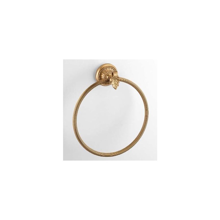 Round Towel holder with casting brass leaves finishing in old-gold. Functional elements that create an extremely elegant, welcoming and high-value bathroom.