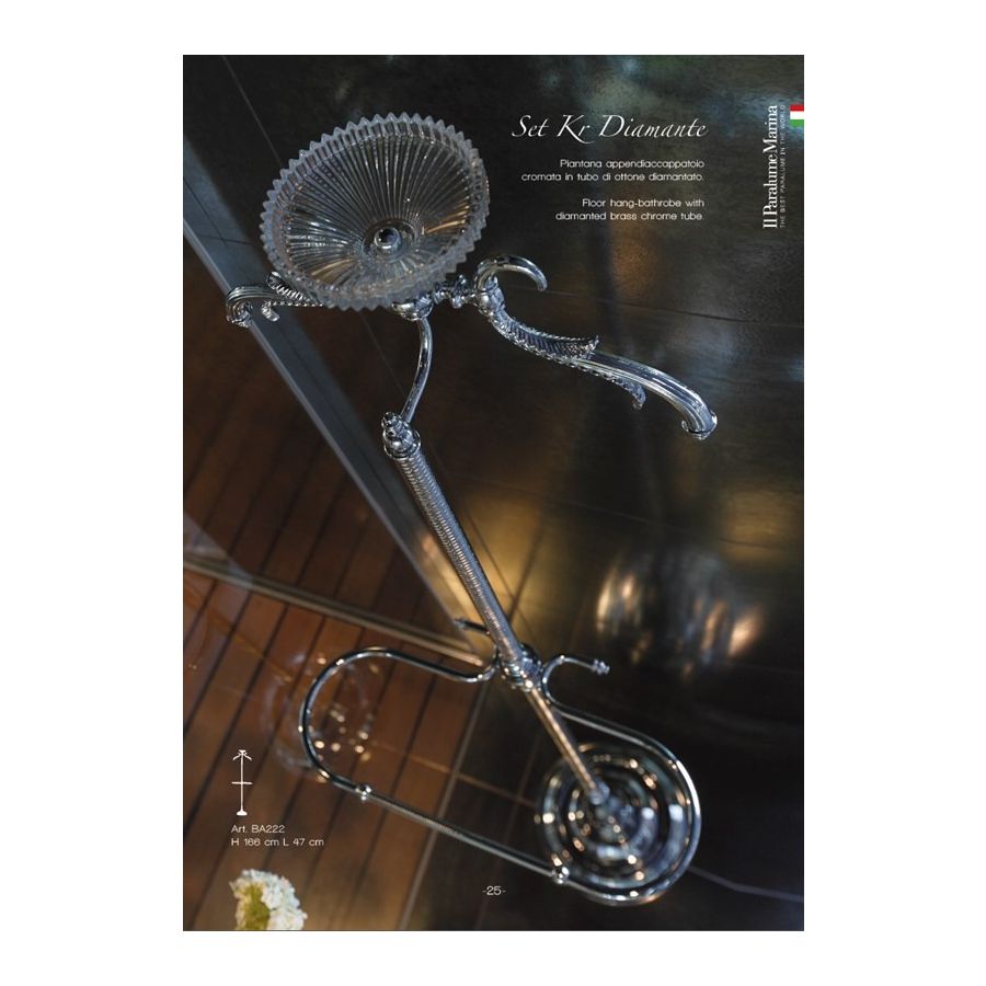 Chromed robe hanger stand in diamond shaped brass tube.